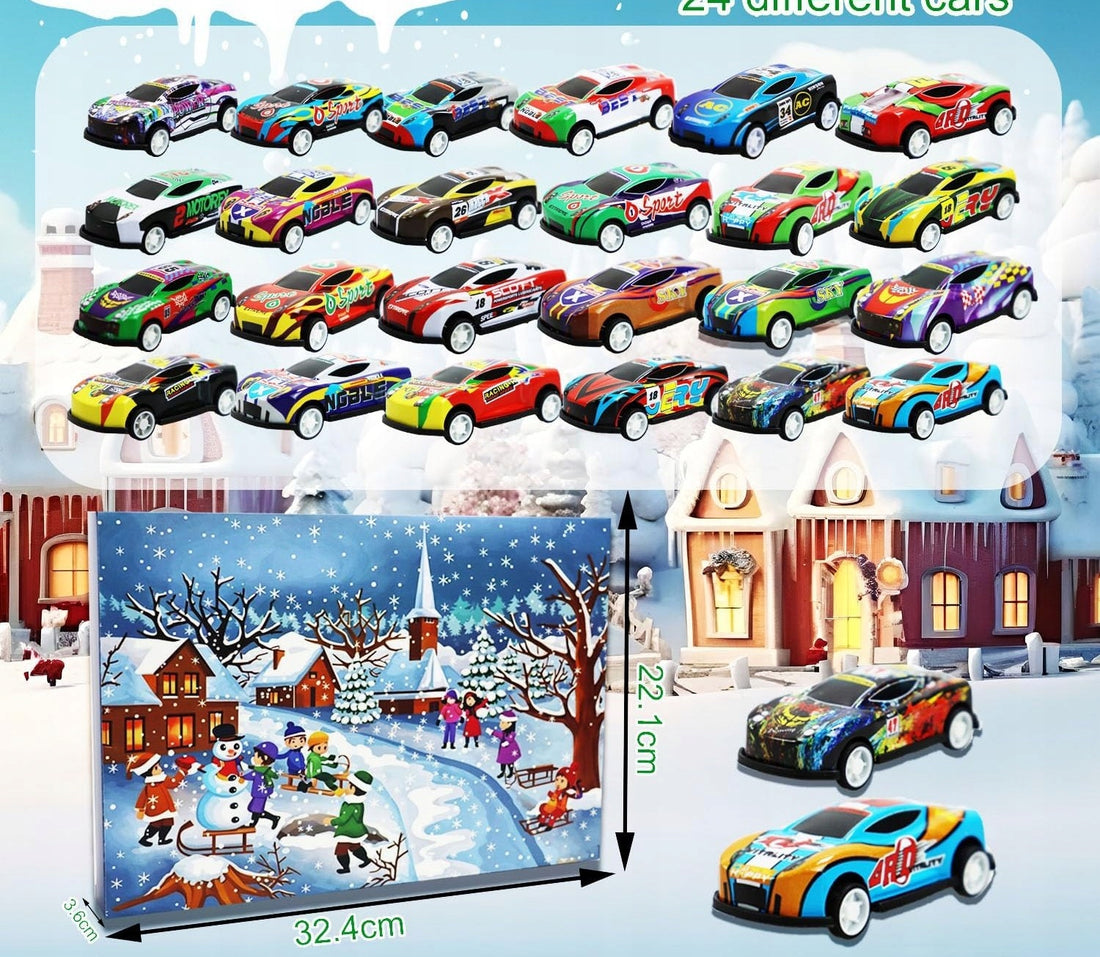 Advento kalendorius su mašinėlėmis vaikams 2025 – didelis rinkinys berniukams