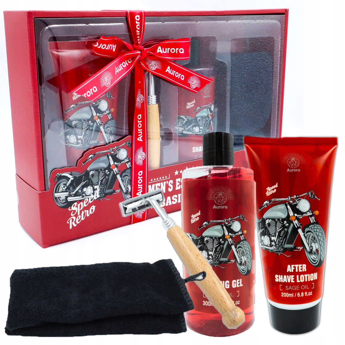 Vyrų skutimosi rinkinys AURORA Retro 4 dalių su rankšluosčiu – dovanų rinkinys