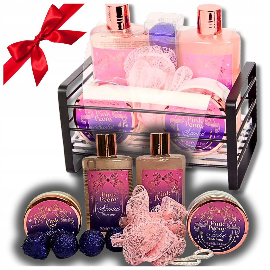 Kalėdinis SPA rinkinys jai – „Pink Peony“ grožio ir poilsio krepšelis