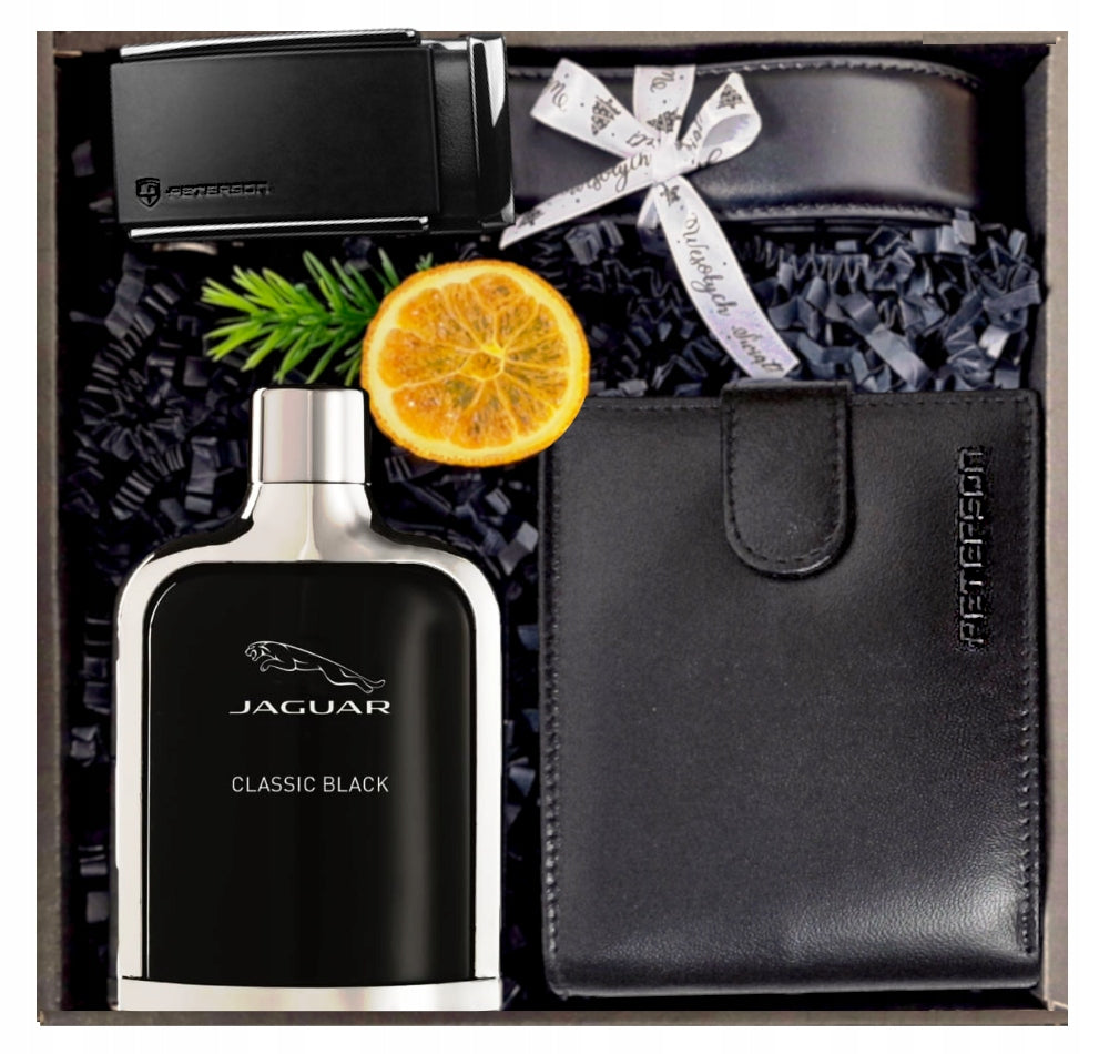 Kalėdinė dovana vyrui - odinis piniginės ir diržo rinkinys + Jaguar kvepalai