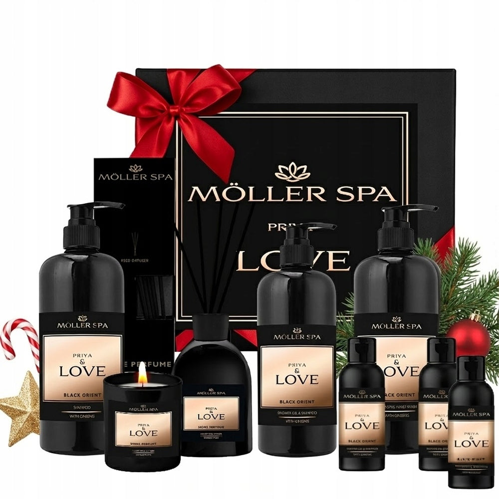 Priya & Love dovanų rinkinys – kalėdinis rinkinys su žvake, difuzoriumi ir kūno kosmetika