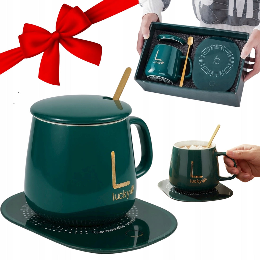 Elektrinis puodelio šildytuvas su keraminiu puodeliu – Kalėdinis dovanų rinkinys