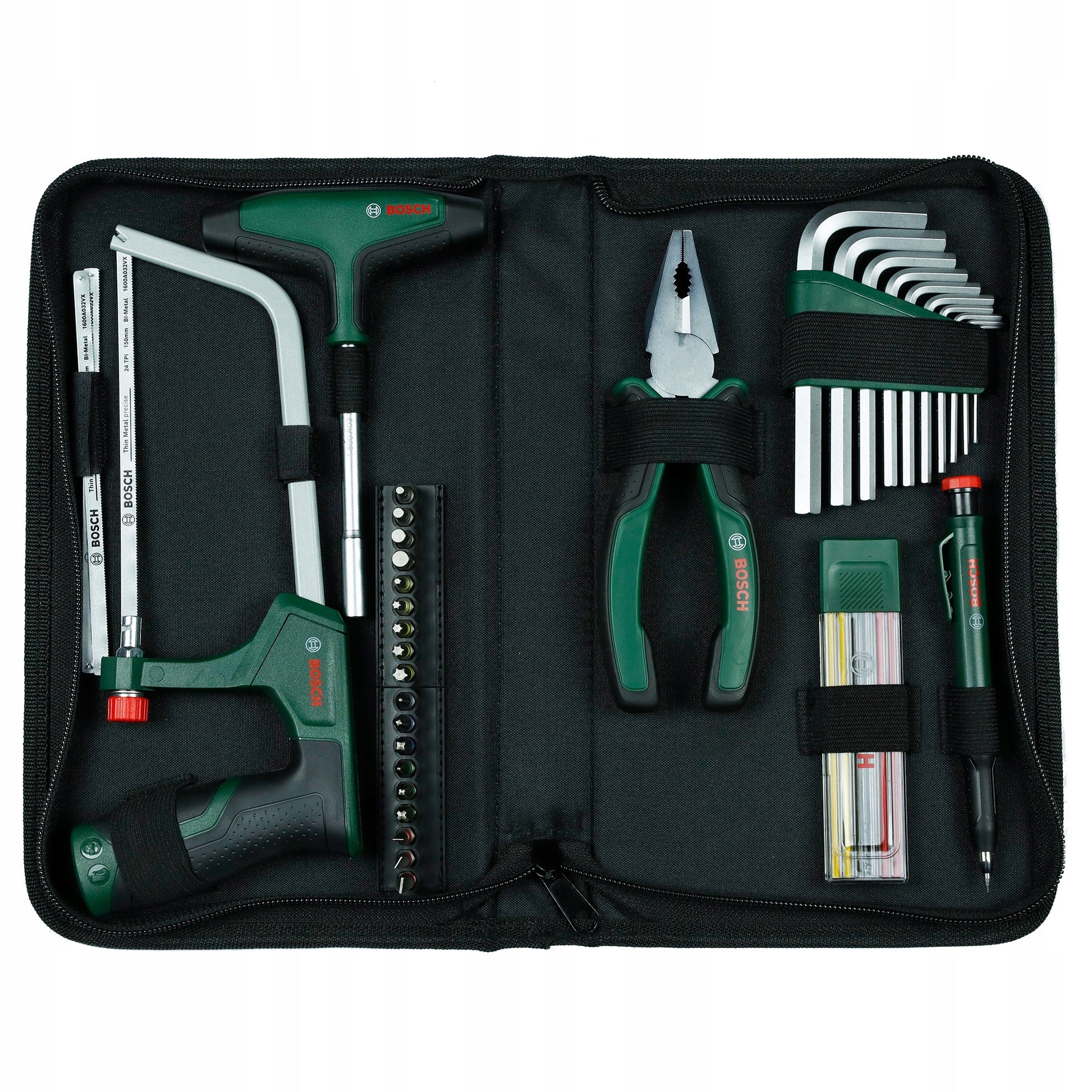 41 dalis iš viso: įrankiai, antgaliai, peiliukai, žymekliai ir talpi įrankių tašė.