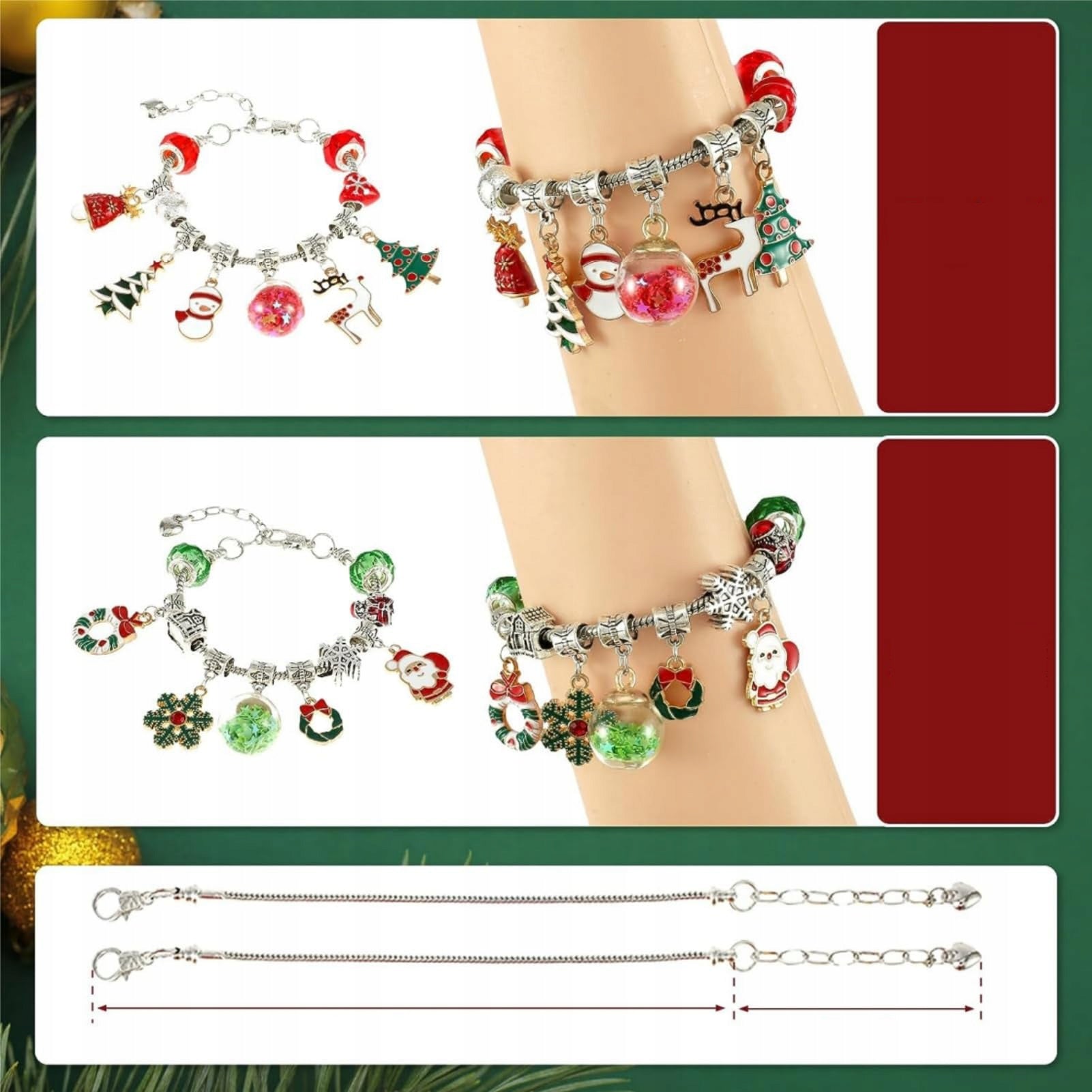 Rinkinyje rasite 2 apyrankes su reguliuojamu ilgiu, prie kurių galite tvirtinti papuošalus ir kurti savo dizainus.