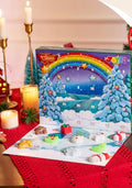 Didelė, dekoratyvinė kalėdinė dėžutė su numeruotais langeliais.