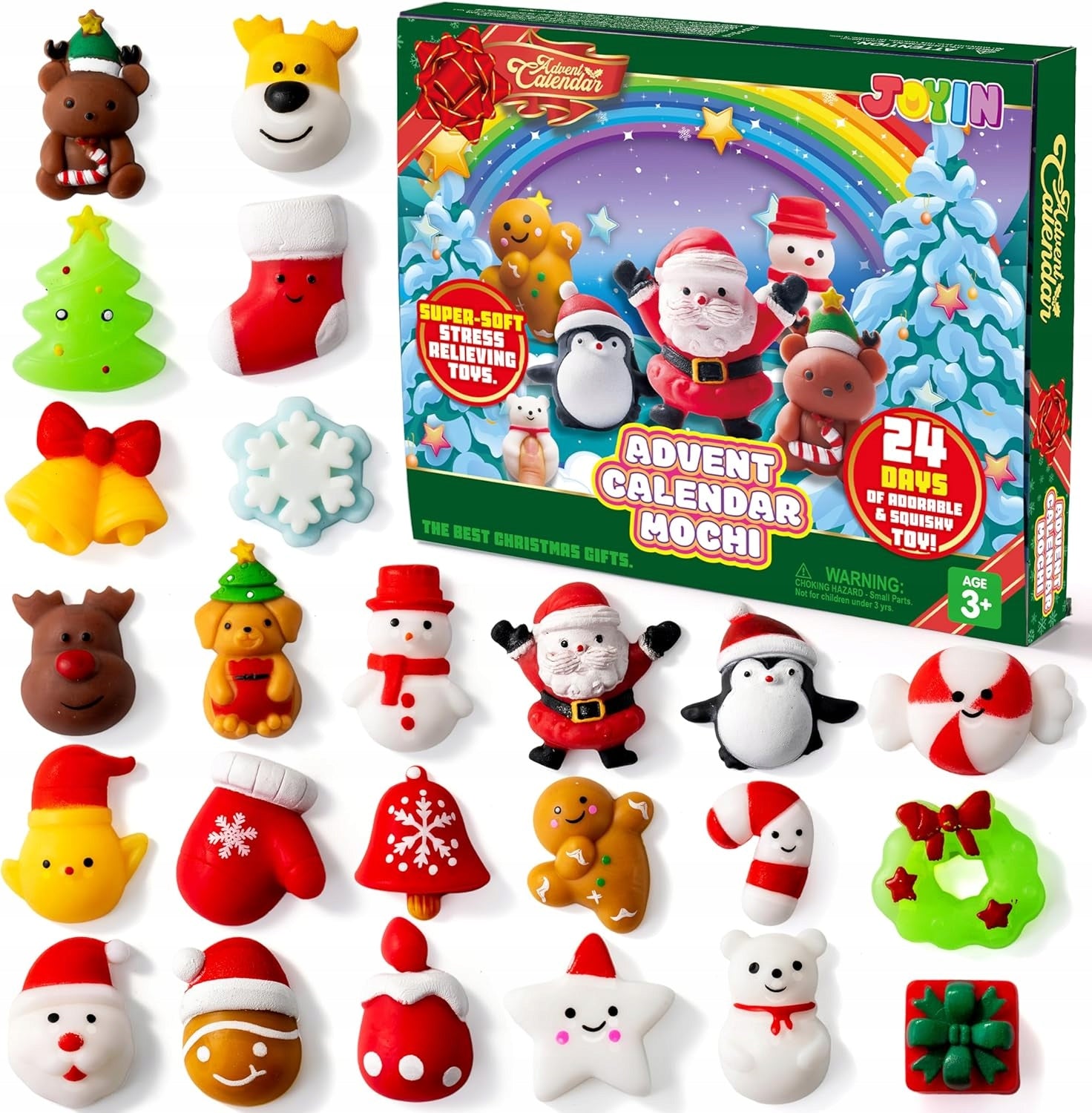 Advento kalendorius su kalėdinėmis figūrėlėmis JOYIN 2025 – didelis rinkinys su 24 minkštomis mochi figūrėlėmis