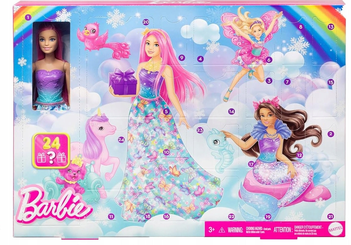 Pradėkite Kalėdų laukimą su nuostabiu „Barbie Dreamtopia“ advento kalendoriumi! Kiekviename lange slepiasi staigmena, kuri pradžiugins kiekvieną mažąją pasakų pasaulio gerbėją. Lėlė Barbie 3in1 ir net 24 magiški aksesuarai pavers gruodžio dienas kupinas kūrybos, džiaugsmo ir stebuklų.