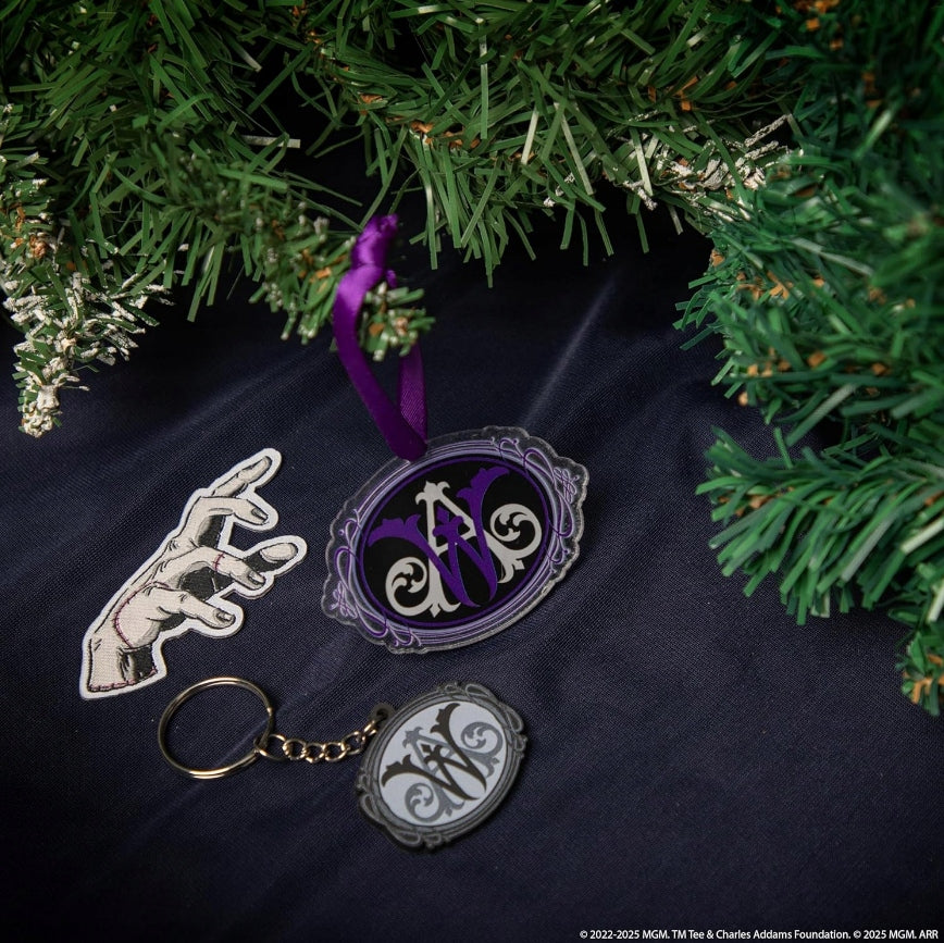 Kalėdinis papuošimas su Nevermore Academy simbolika