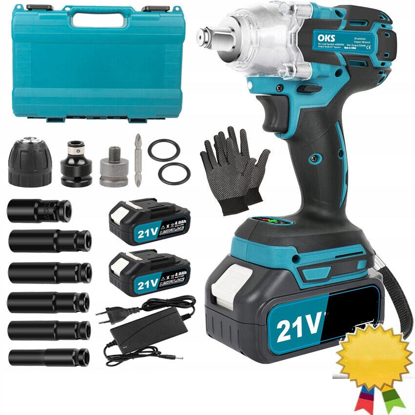 Profesionalus bevielis bešepetėlinis smūginis suktukas su galingu 21V varikliu ir net dviem akumuliatoriais – idealus pasirinkimas tiek automobilių entuziastams, tiek dirbtuvėms ar statybos darbams.