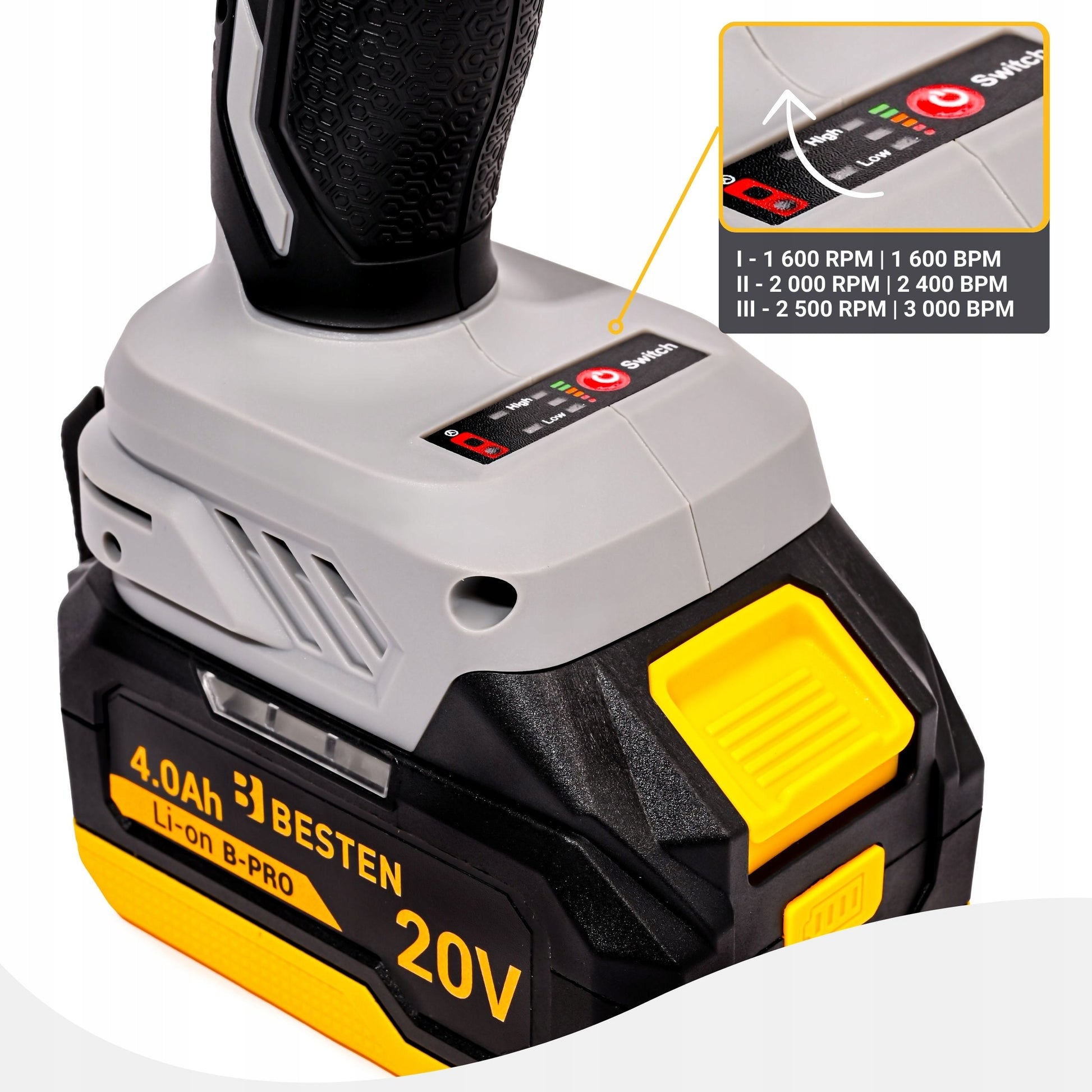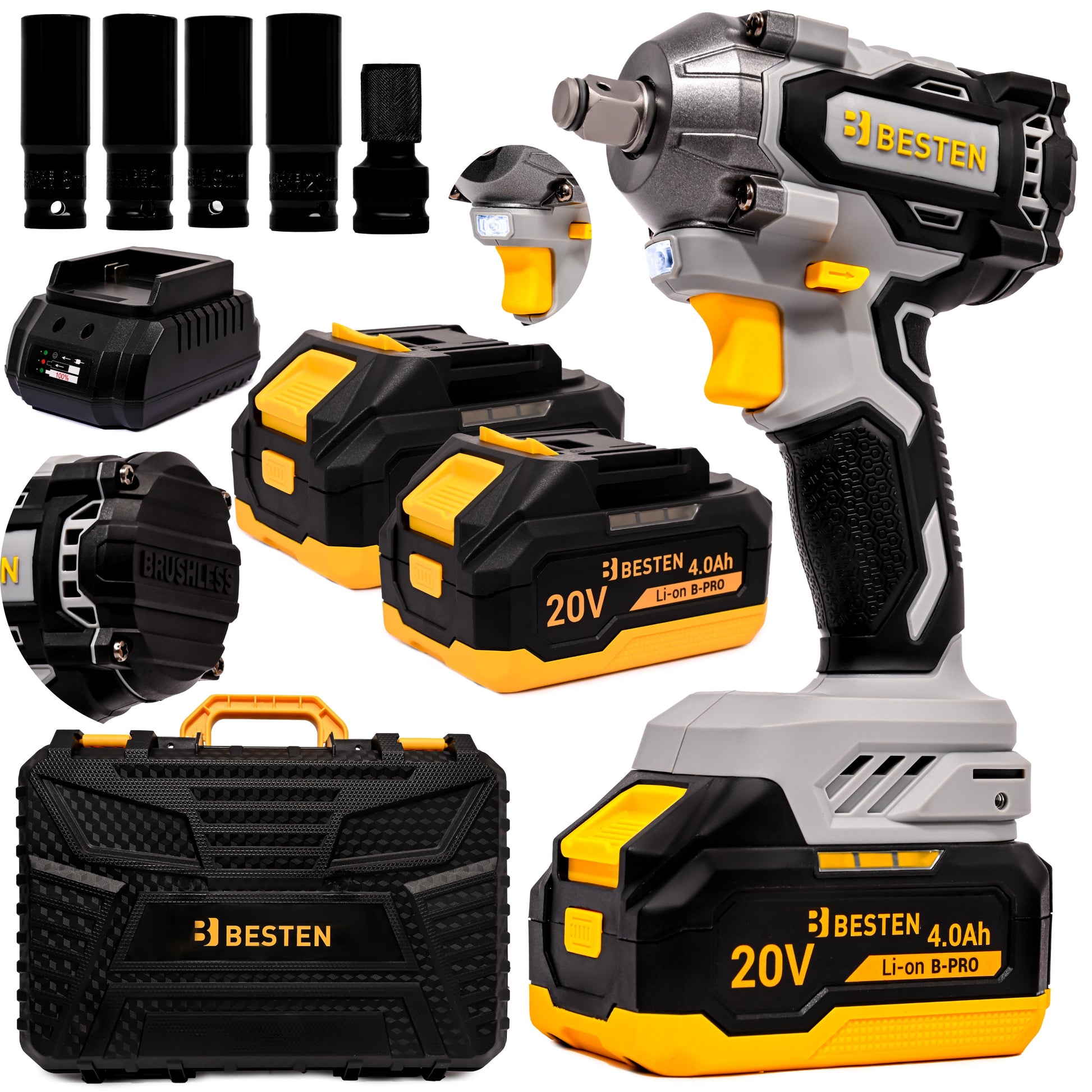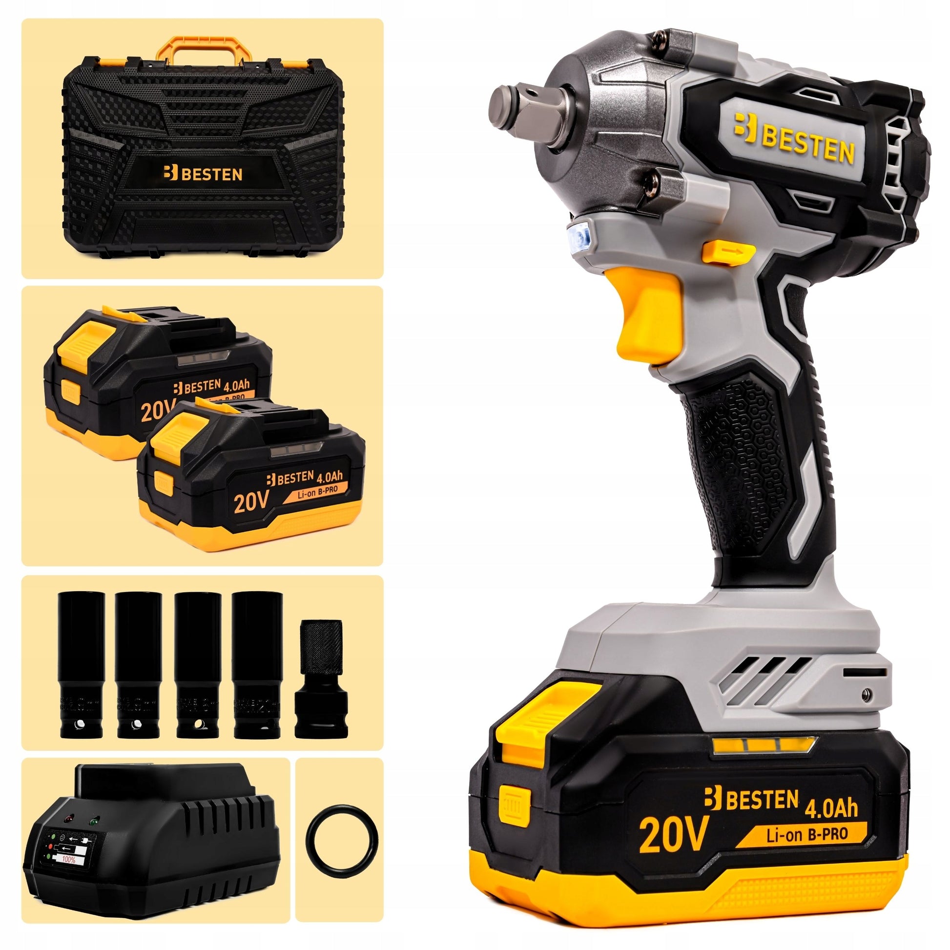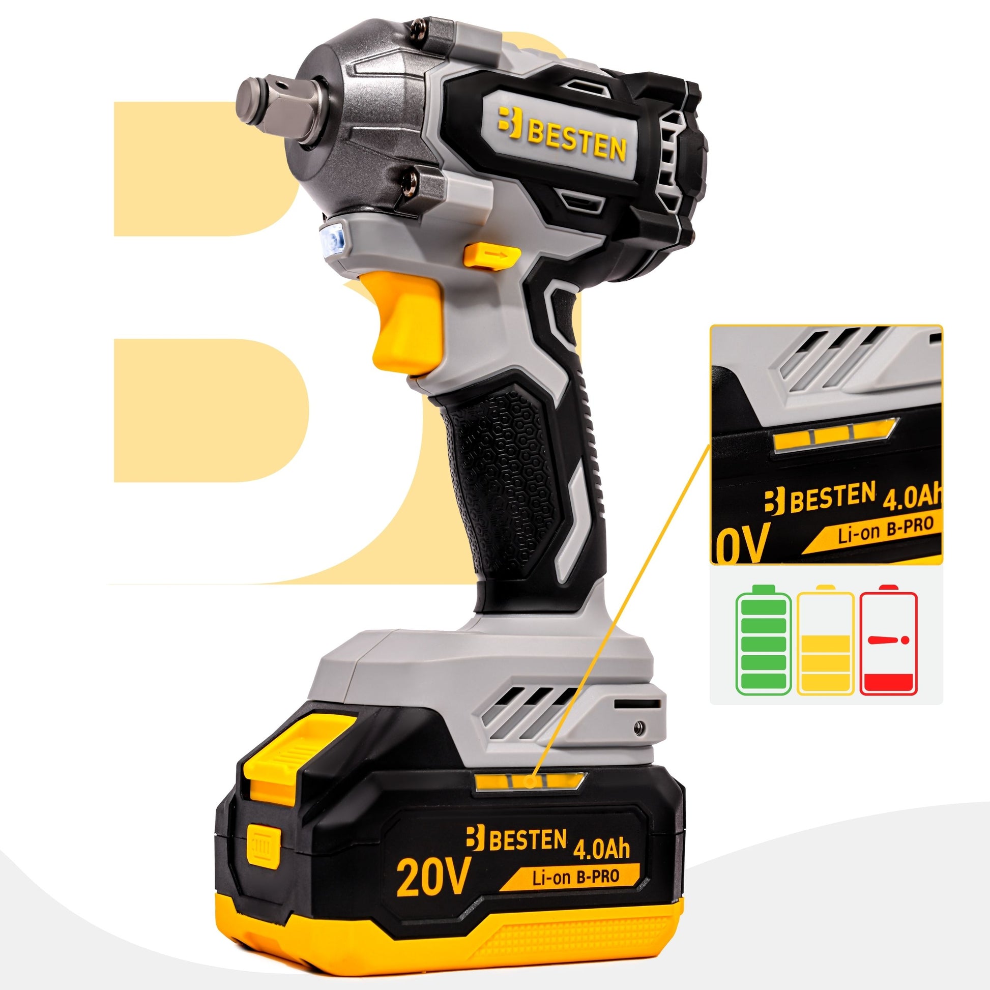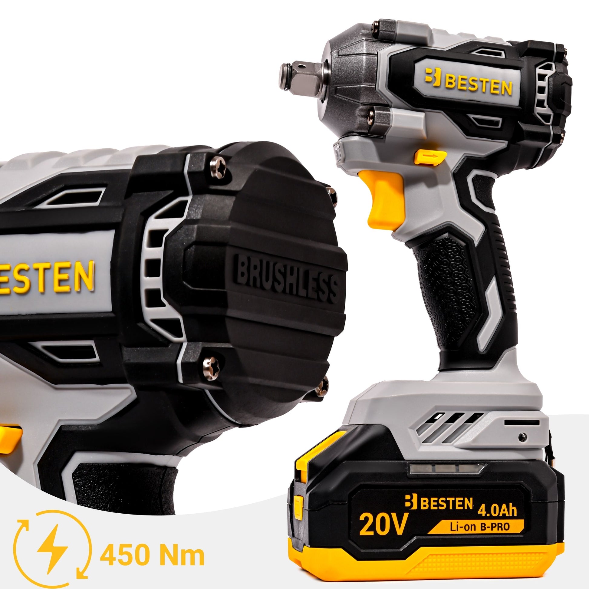 Akumuliatorinis smūginis suktuvas BESTEN 20V 450 Nm su 2 akumuliatoriais (4.0Ah) ir lagaminu