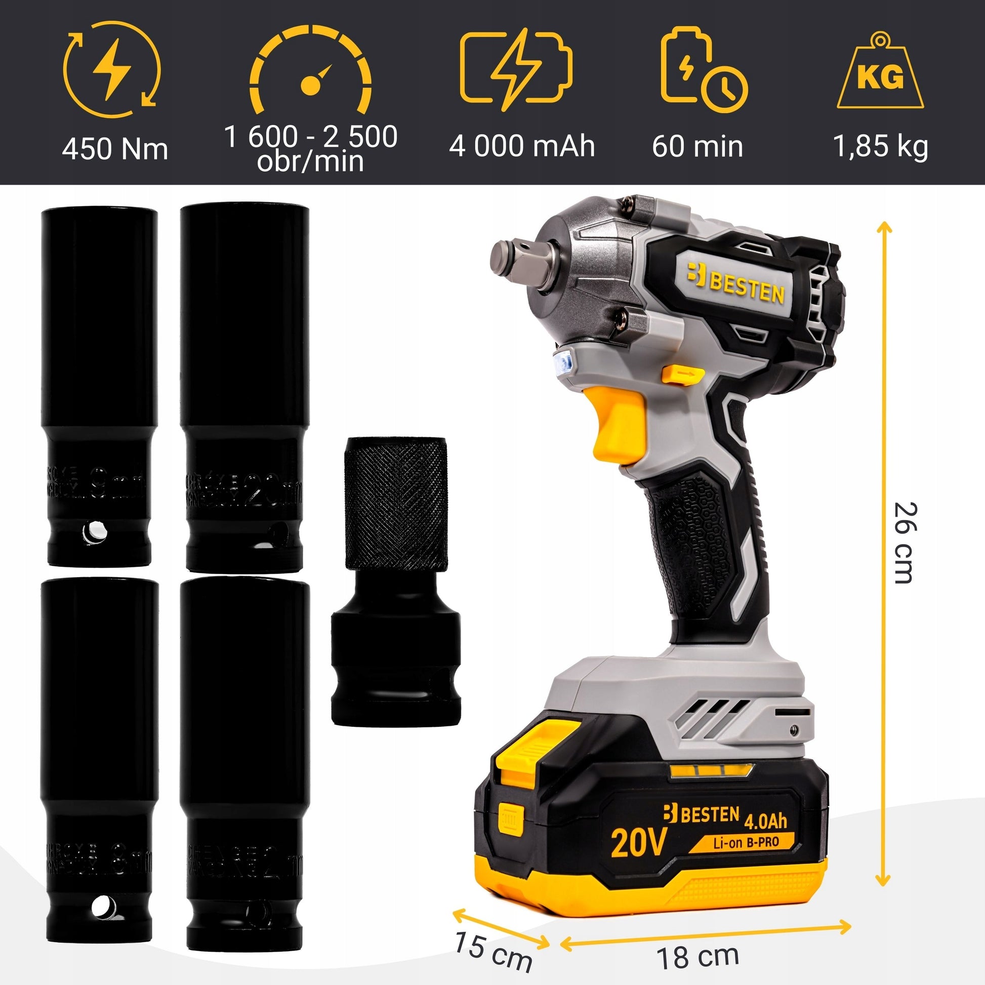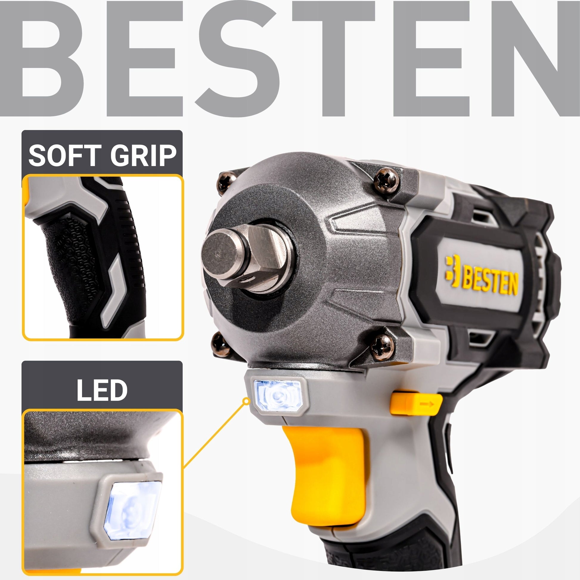 BESTEN 450 Nm – tai reali galia, tikslumas ir saugumas be bereikalingo perpirkimo už „išpūstus“ parametrus. Puikiai tinka automobilių ratams, dirbtuvėms, servisams bei „pasidaryk pats“ darbams.