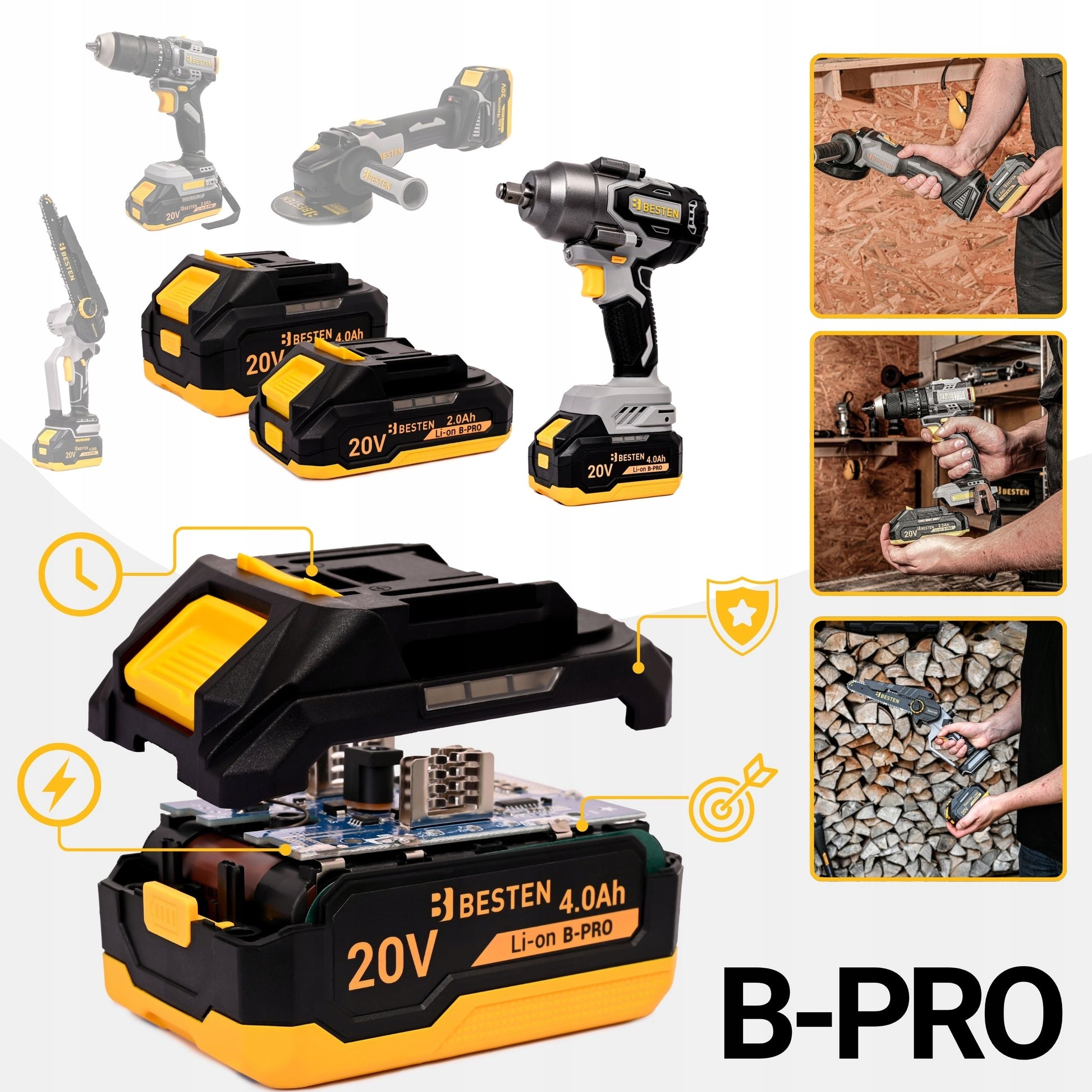 B-PRO akumuliatorių sistema – viena baterija tinka keliems BESTEN įrankiams.