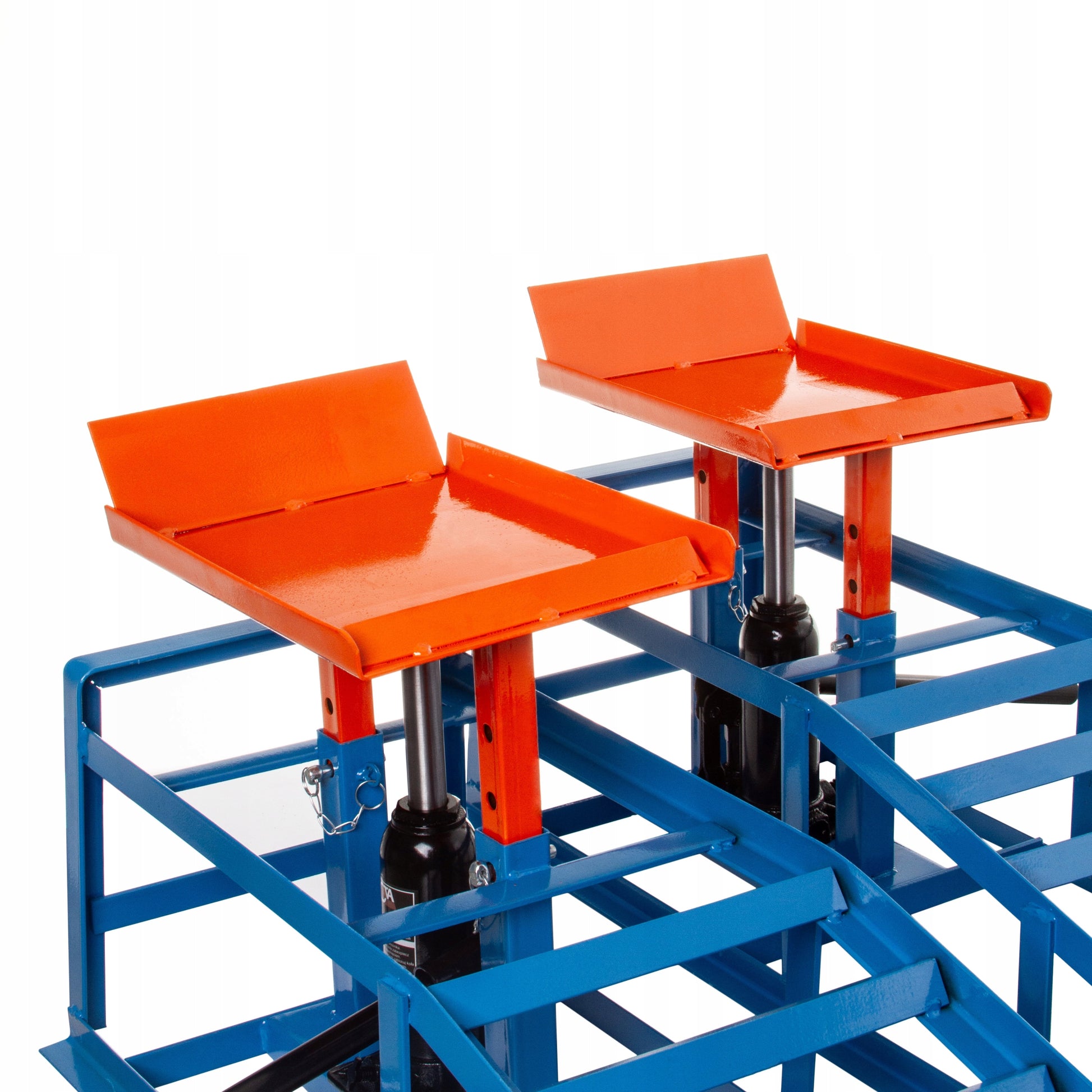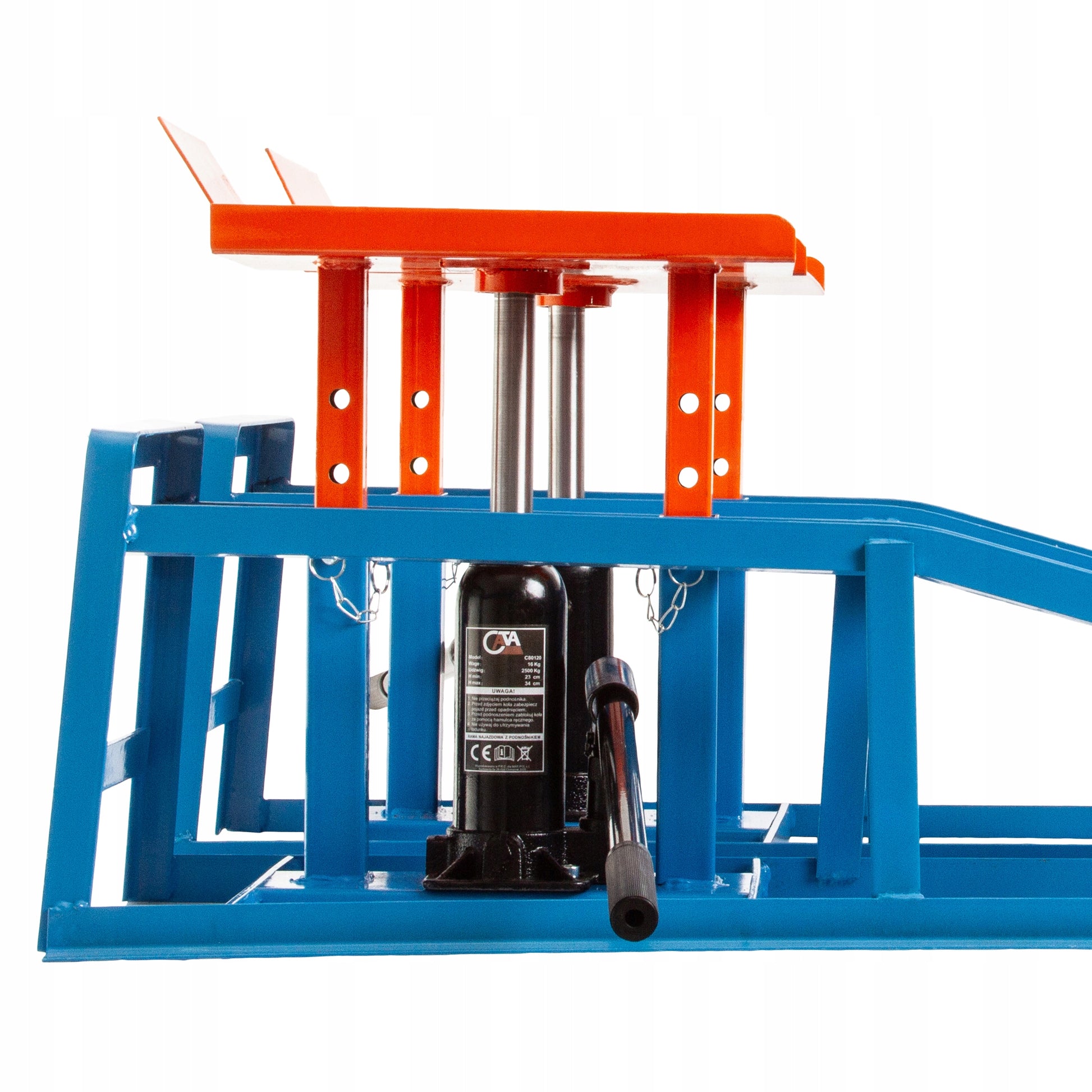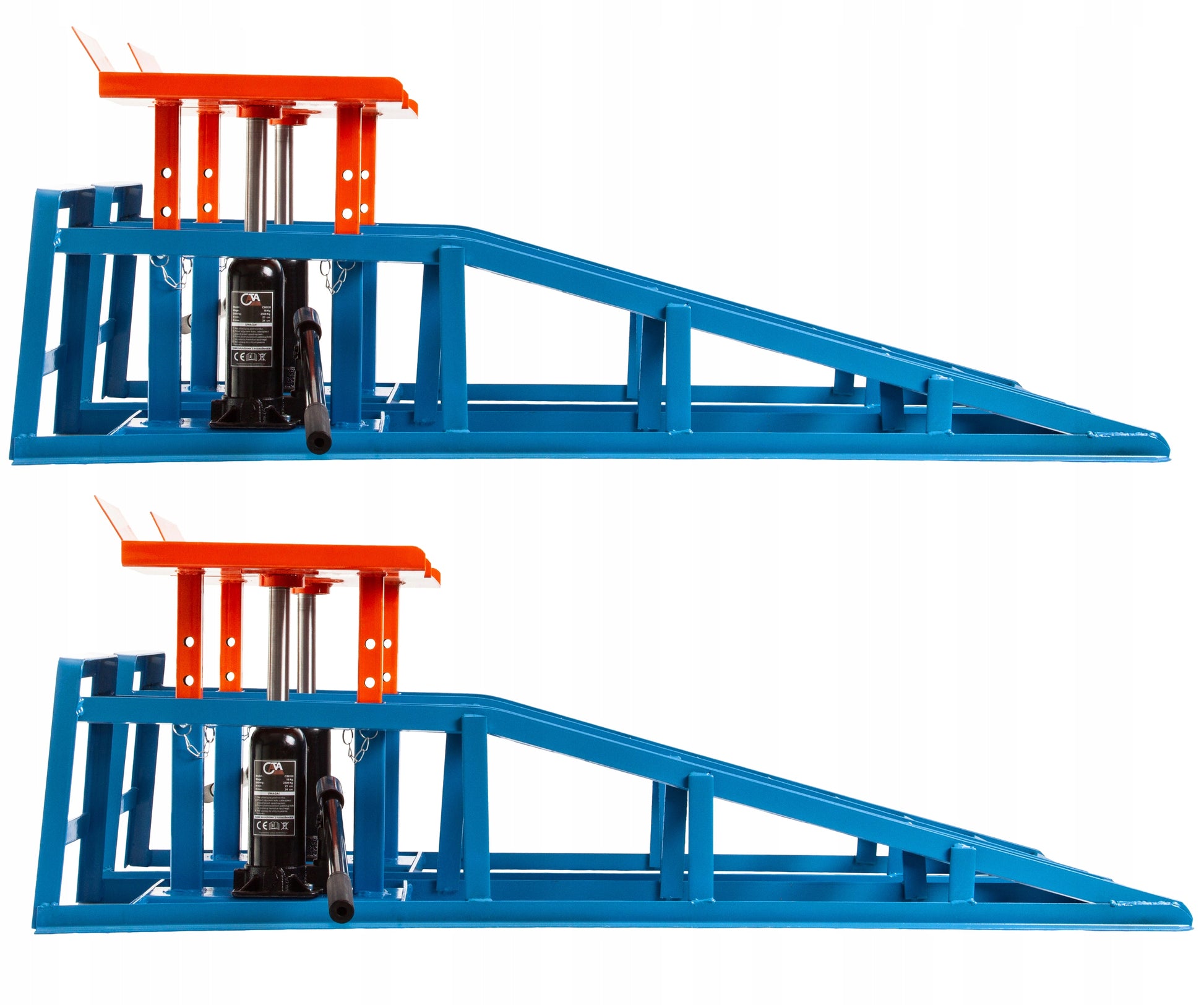 Tvirtos metalinės automobilio rampos su hidrauliniu pakėlimo mechanizmu – idealus sprendimas automobilių priežiūrai, remontui ar techninei apžiūrai. Komplektą sudaro 2 rampos, kurių kiekviena turi įmontuotą hidraulinį keltuvą bei papildomą saugos apsaugą.