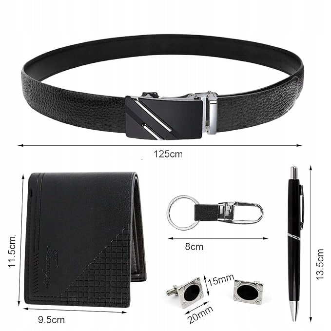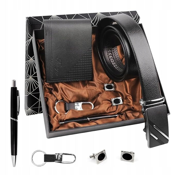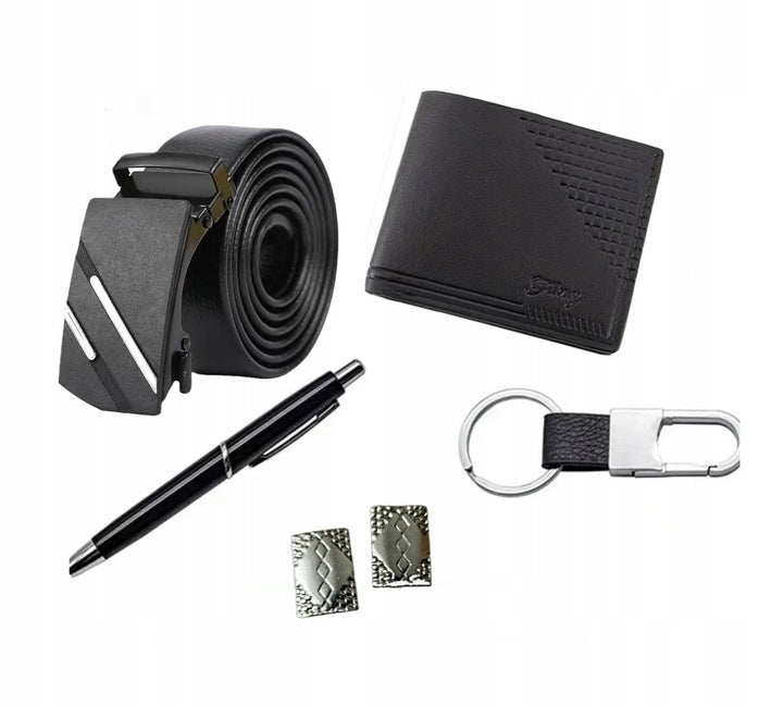 Dovanų rinkinys vyrui – piniginė, diržas, sąsagos, rašiklis ir raktų pakabukas