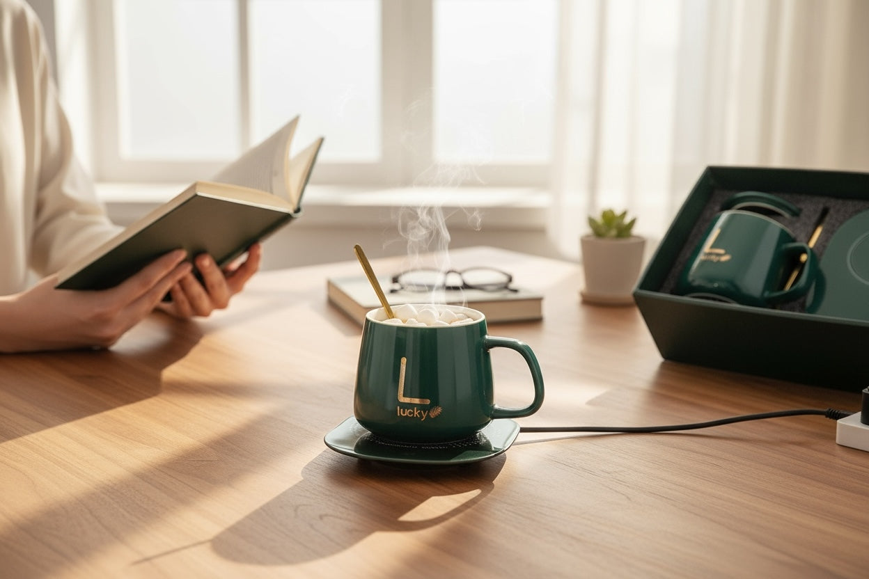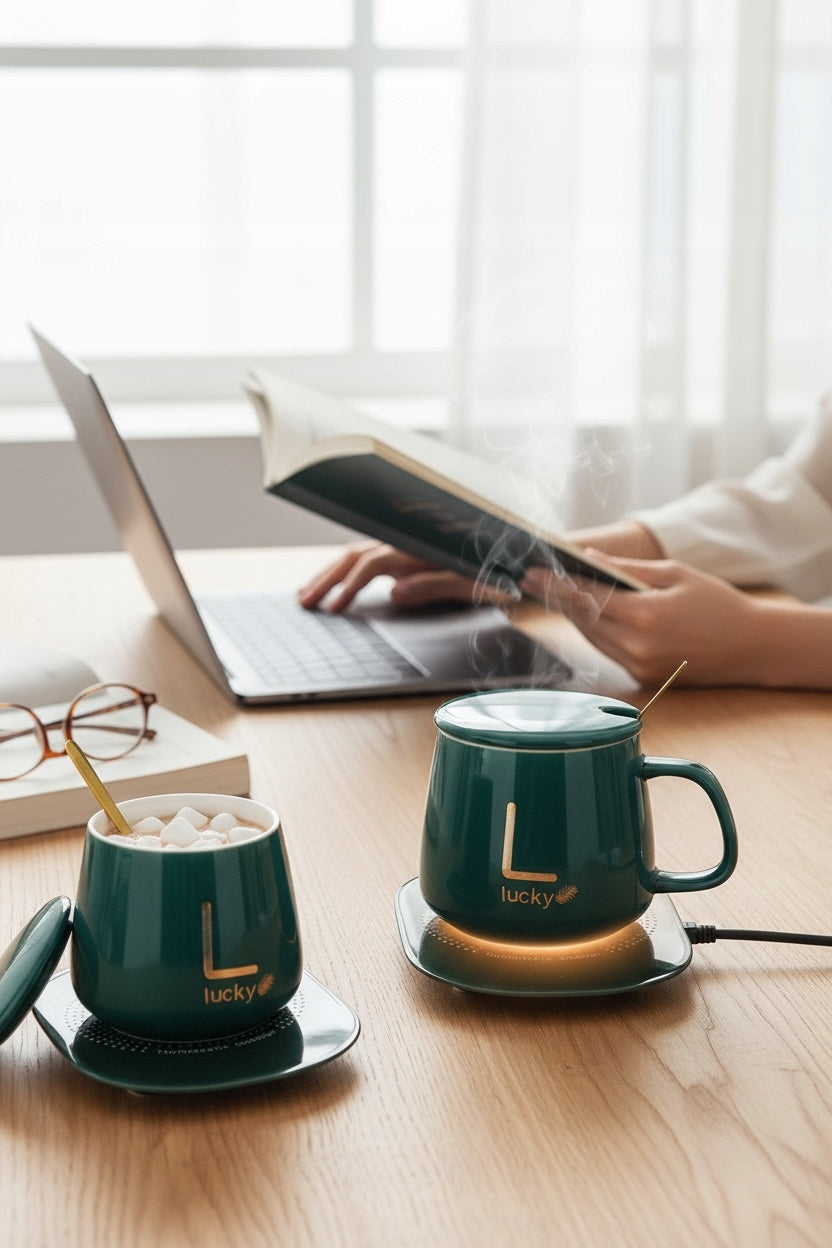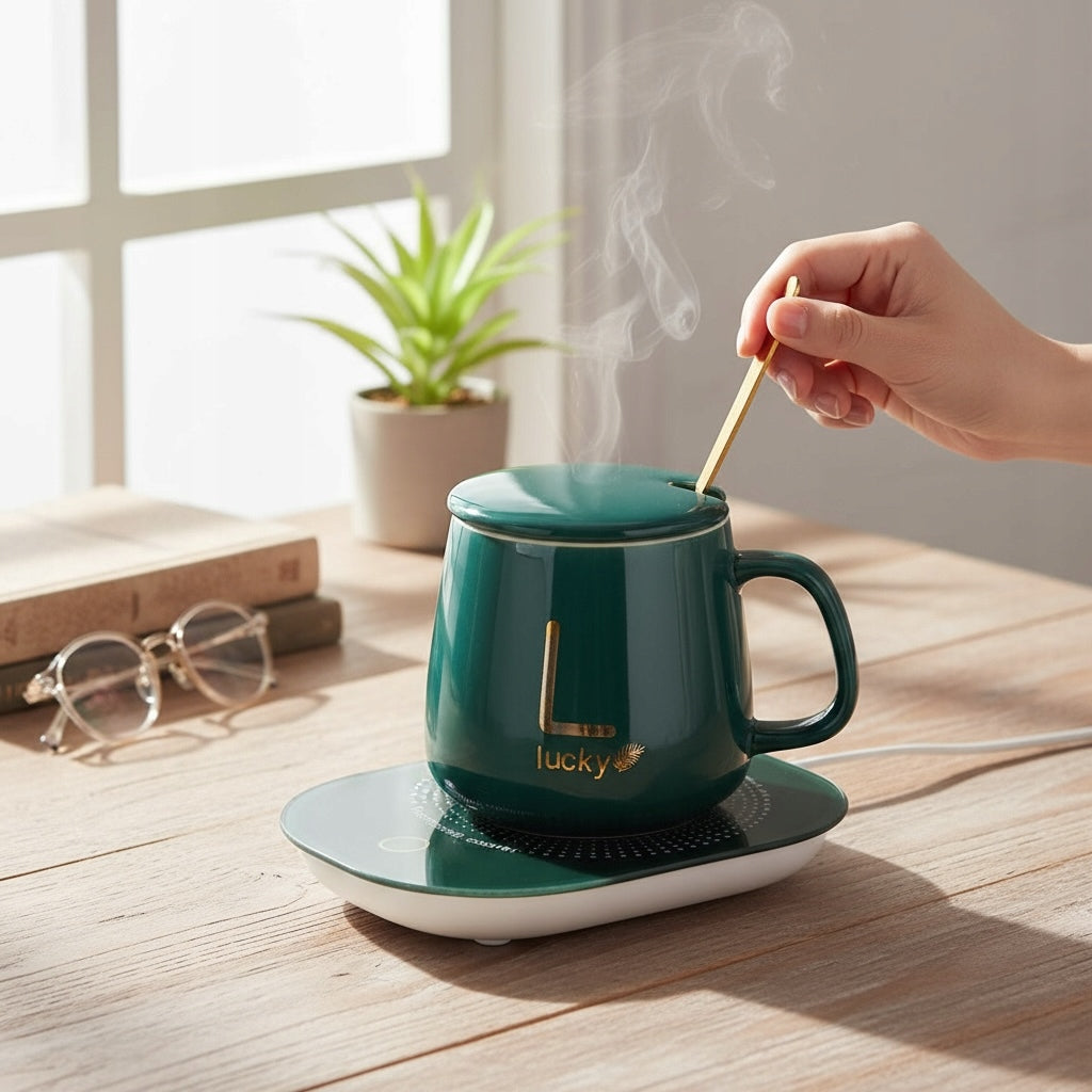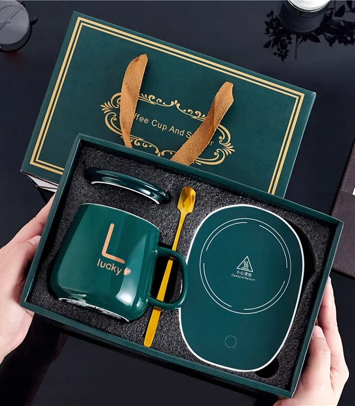 Elektrinis puodelio šildytuvas su keraminiu puodeliu – Kalėdinis dovanų rinkinys