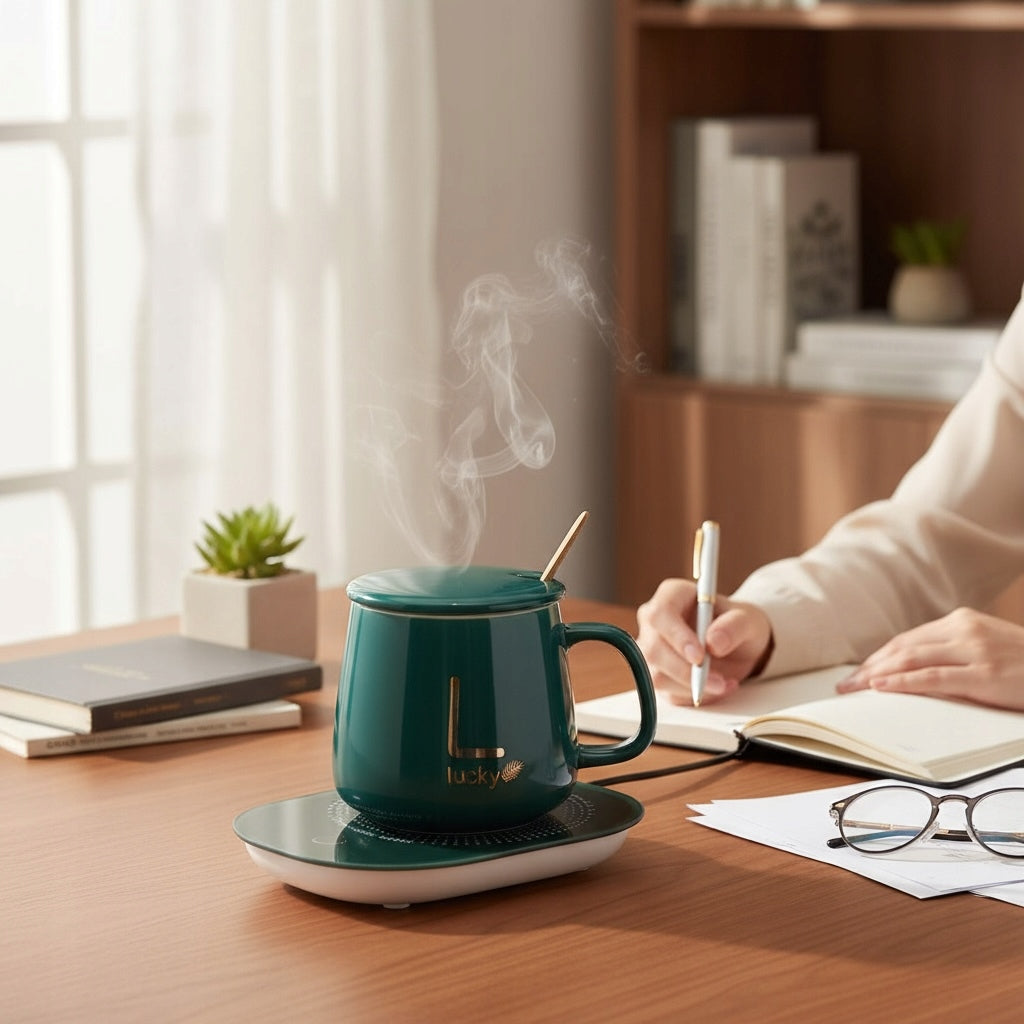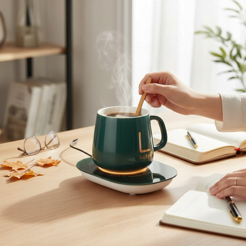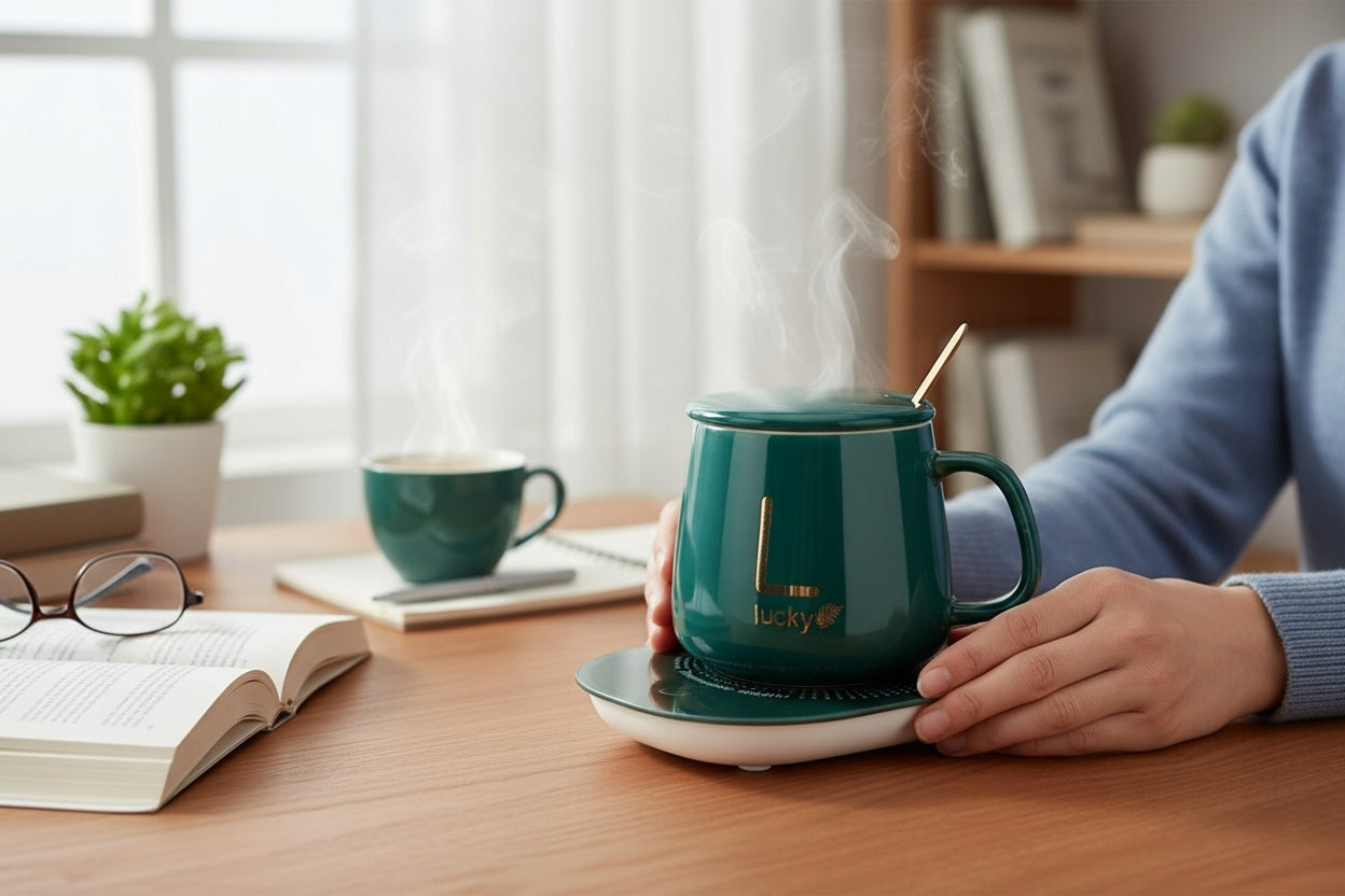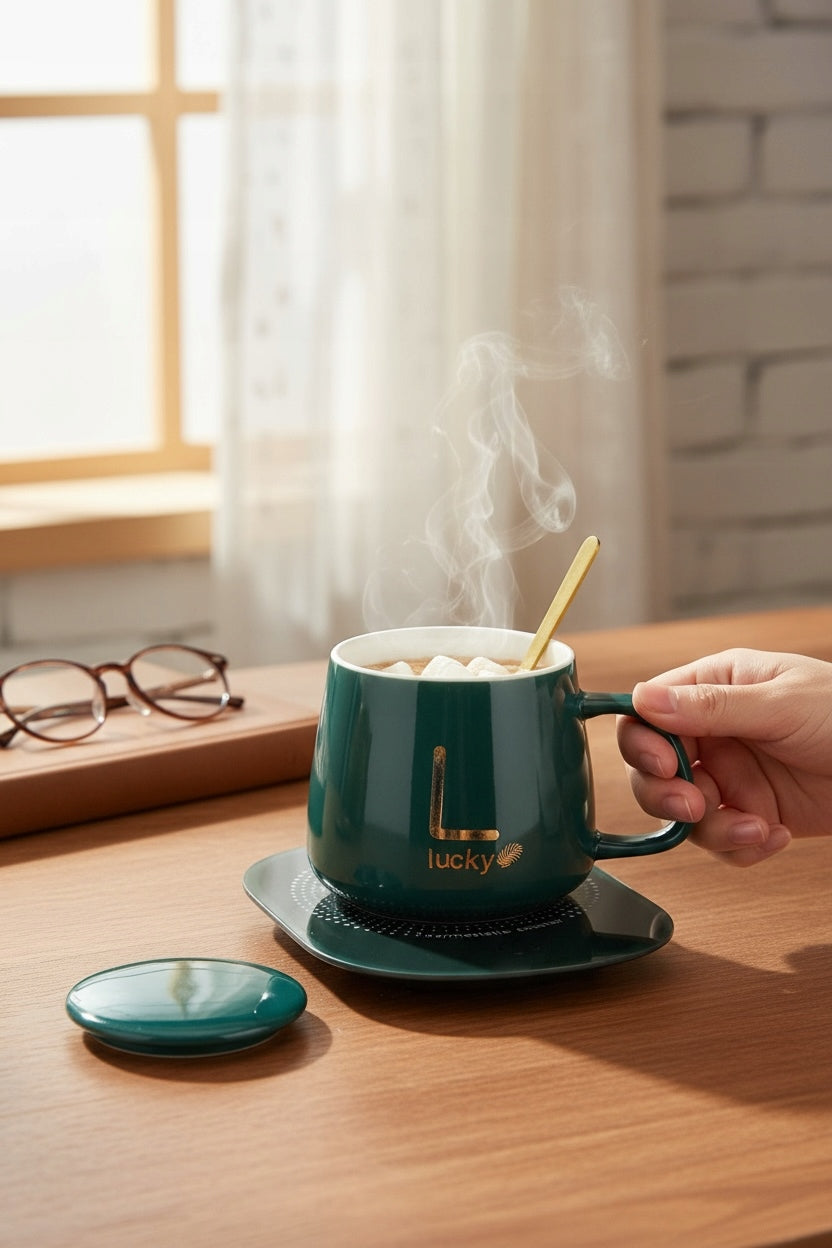 Elektrinis puodelio šildytuvas su keraminiu puodeliu – Kalėdinis dovanų rinkinys