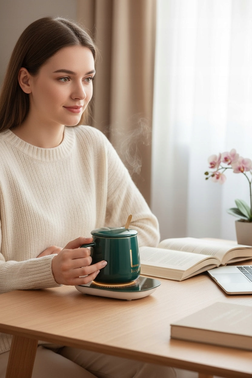 Praktiška, stilinga ir šilta dovana – puikus pasirinkimas mamai, tėčiui, žmonai, seneliams ar kolegai. Rinkinys su elektriniu šildytuvu palaiko gėrimo temperatūrą iki 60 °C, todėl mėgstama arbata ar kava niekada neatšals.
