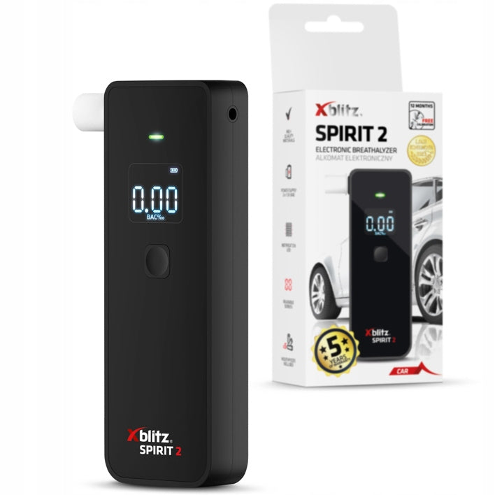 Xblitz Spirit 2 – tai modernus, puslaidininkiniu jutikliu paremtas alkotesteris, kuris užtikrina greitą ir wiarygodny alkoholio lygio matavimą. Komplekte rasite viską, ko reikia iš karto naudojimui: 5 antgalius ir 2 AA baterijas.