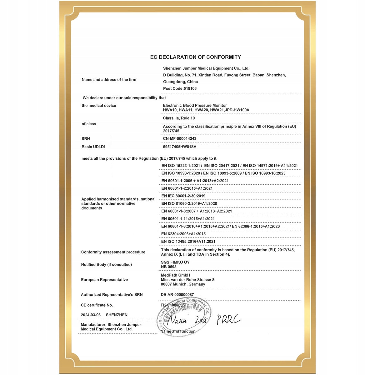 Jumper HWA10 – tai IIa klasės medicininis kraujospūdžio matuoklis, pasižymintis dideliu tikslumu, patogiu naudojimu ir kompaktišku dizainu. Sukurtas tiek namų, tiek profesionaliam naudojimui, jis užtikrina patikimą kraujospūdžio ir pulso matavimą bet kuriuo metu.