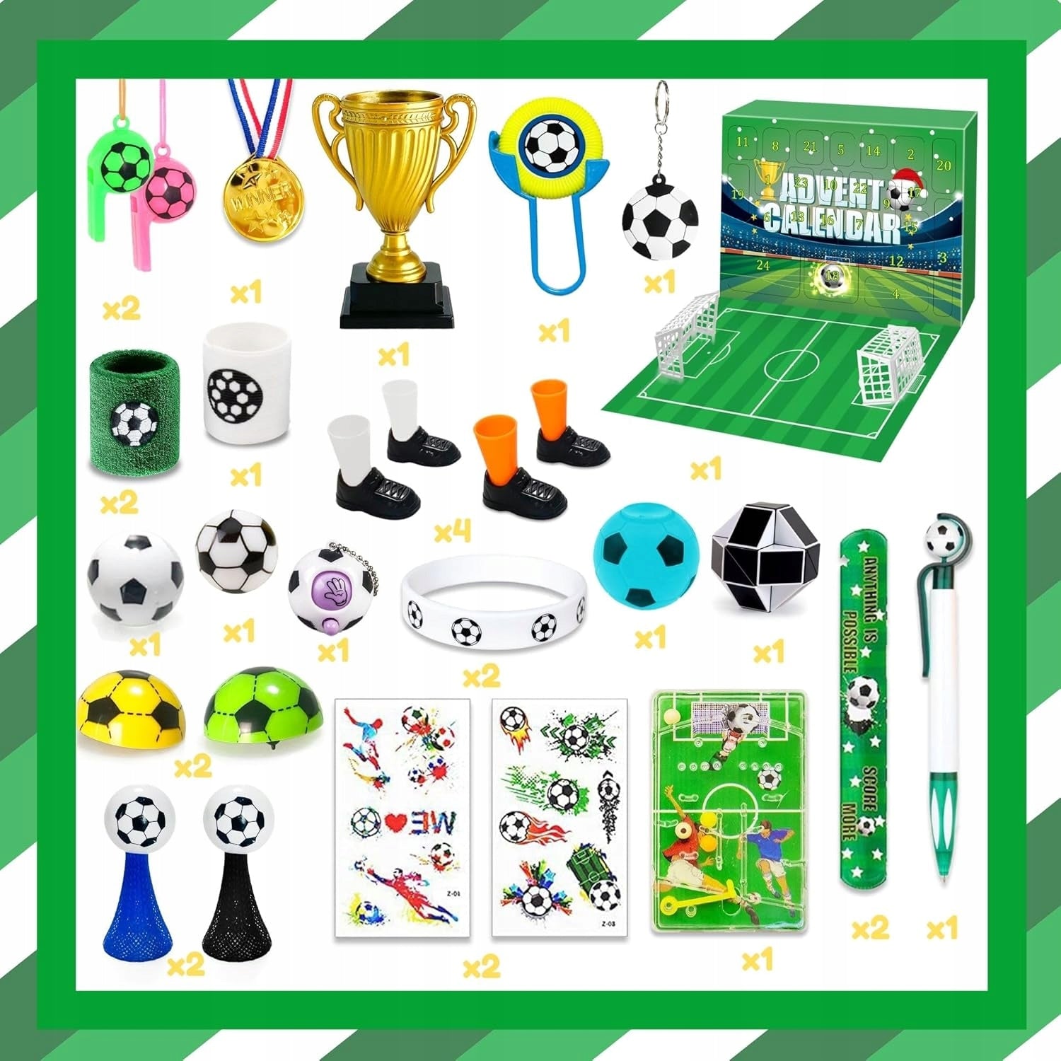 Futbolo tematikos advento kalendorius – tai puiki dovana vaikams ir sporto gerbėjams, suteikianti džiaugsmo kiekvieną gruodžio dieną. Kiekviename langelyje slepiasi nauja staigmena, kuri sukuria šventinę nuotaiką ir kasdienį laukimo jaudulį.