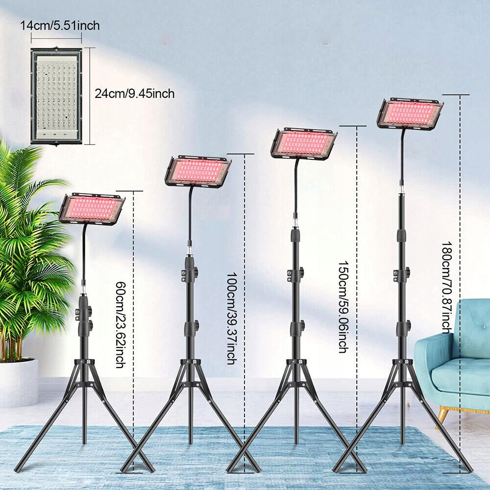 Infraraudonųjų spindulių terapinė lempa – 96 LED šviesos diodai, reguliuojamas stovas, laikmatis, pulsuojantis režimas