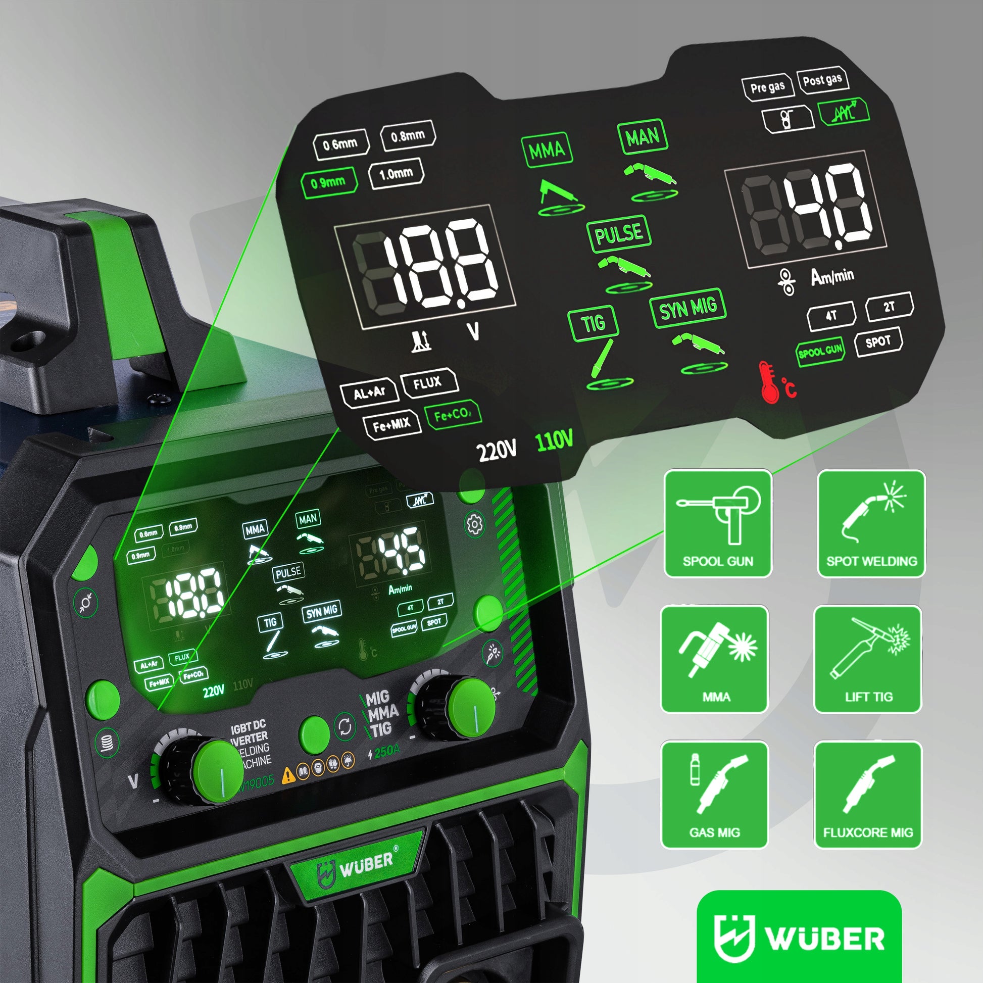 Inverterinis pusautomatis suvirinimo aparatas Wuber MIG FLUX / MMA / TIG / MIG-MAG / 250a