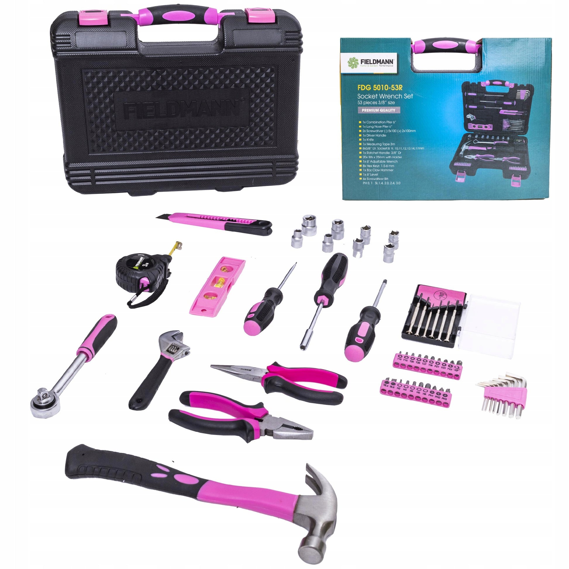 Įrankių rinkinys moterims Fieldmann FDG 5010-53R, 53 dalių, rožinis lagaminas