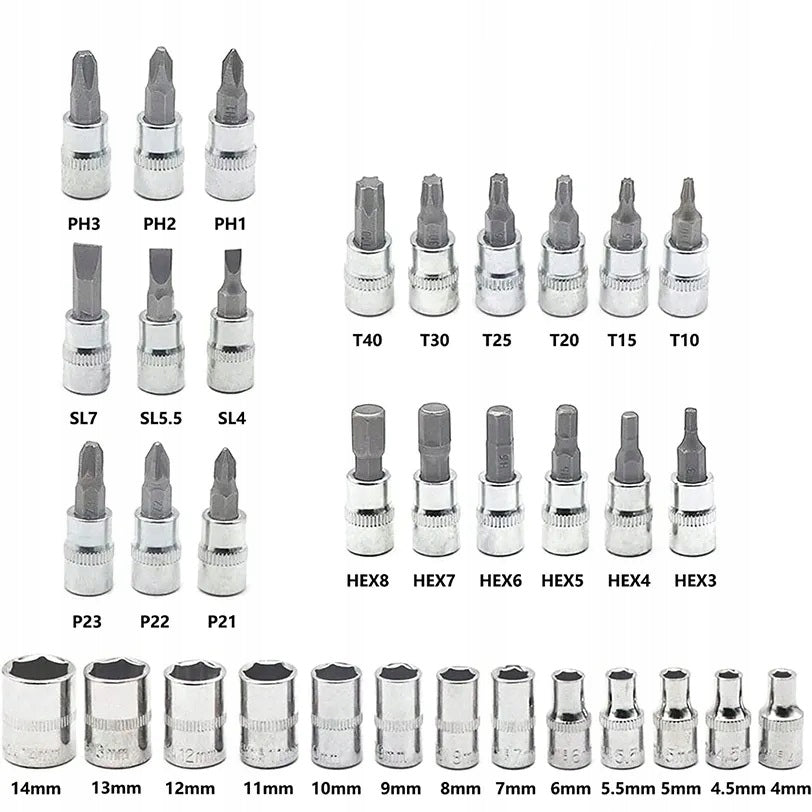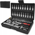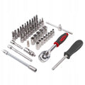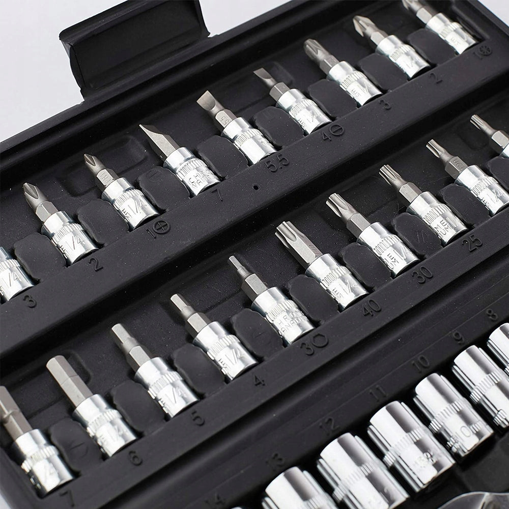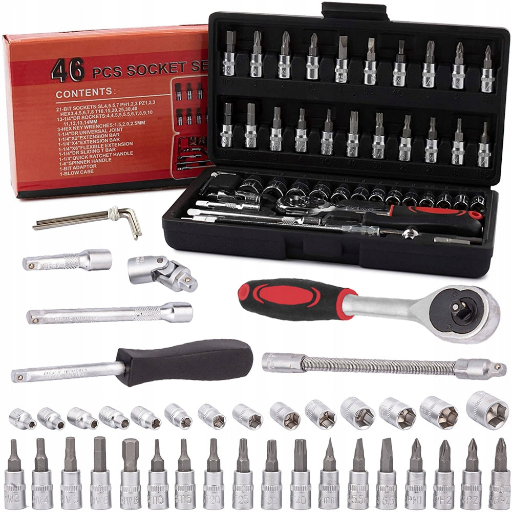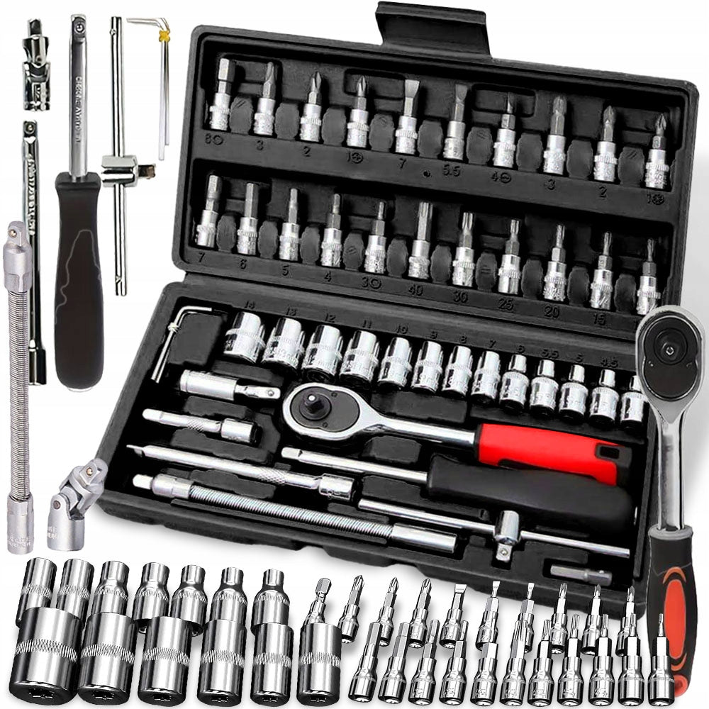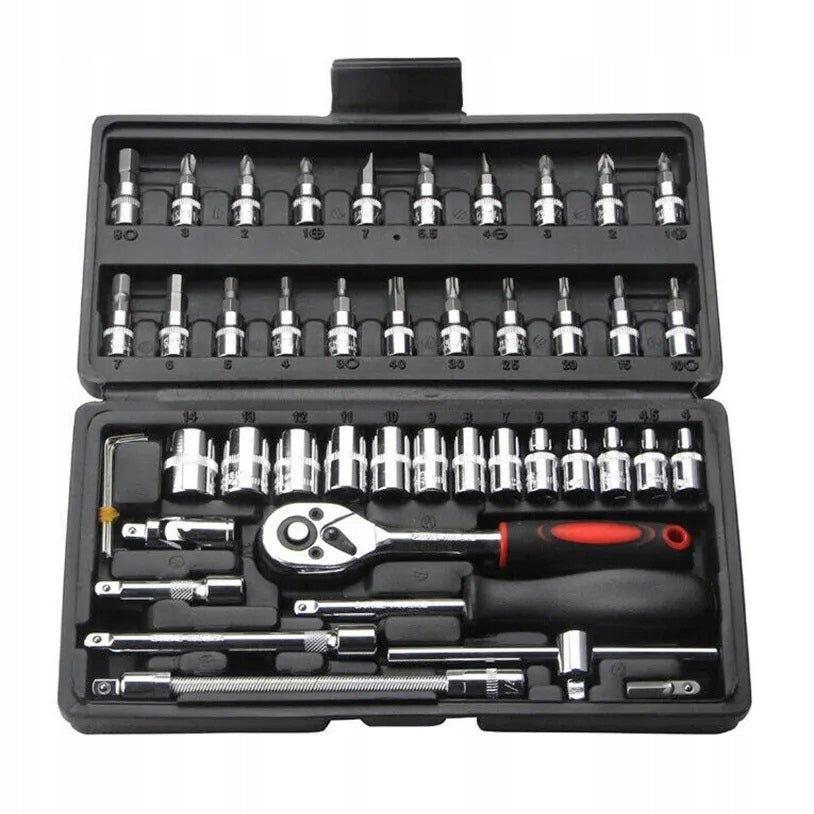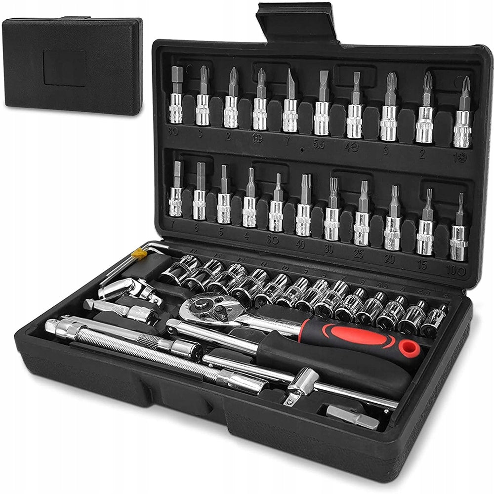 Kompaktiškas ir universalus 46 dalių galvučių bei įrankių rinkinys, pagamintas iš aukštos kokybės chromvanadinio (Cr-V) plieno, užtikrinančio ilgaamžiškumą, atsparumą dilimui ir didelę tvirtumą. Puikiai tinka tiek profesionalams, tiek mėgėjams – automobilių remontui, techninei priežiūrai ar buities darbams.