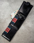 Pagaminta iš natūralios odos, su RFID apsauga nuo bekontakčio duomenų nuskaitymo.