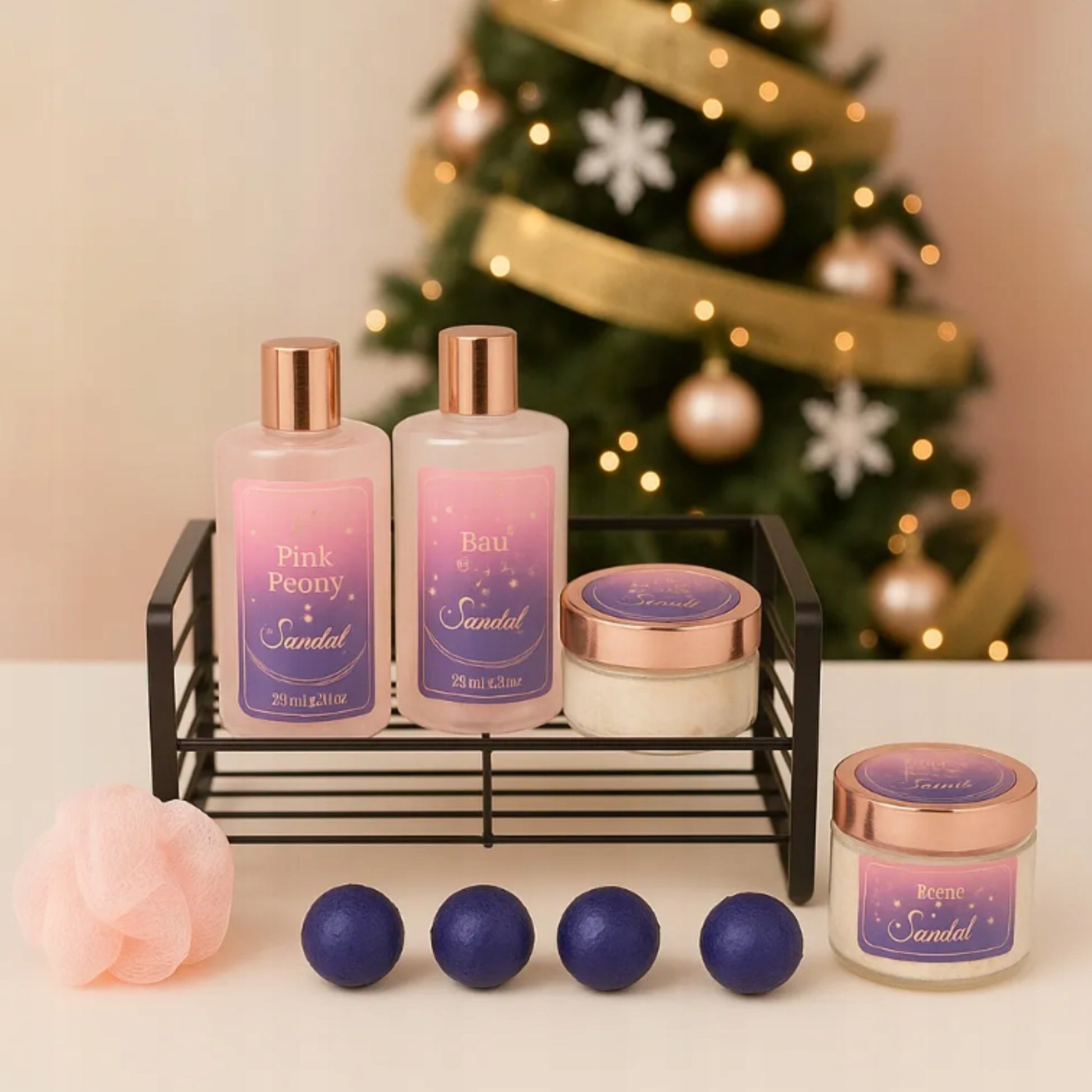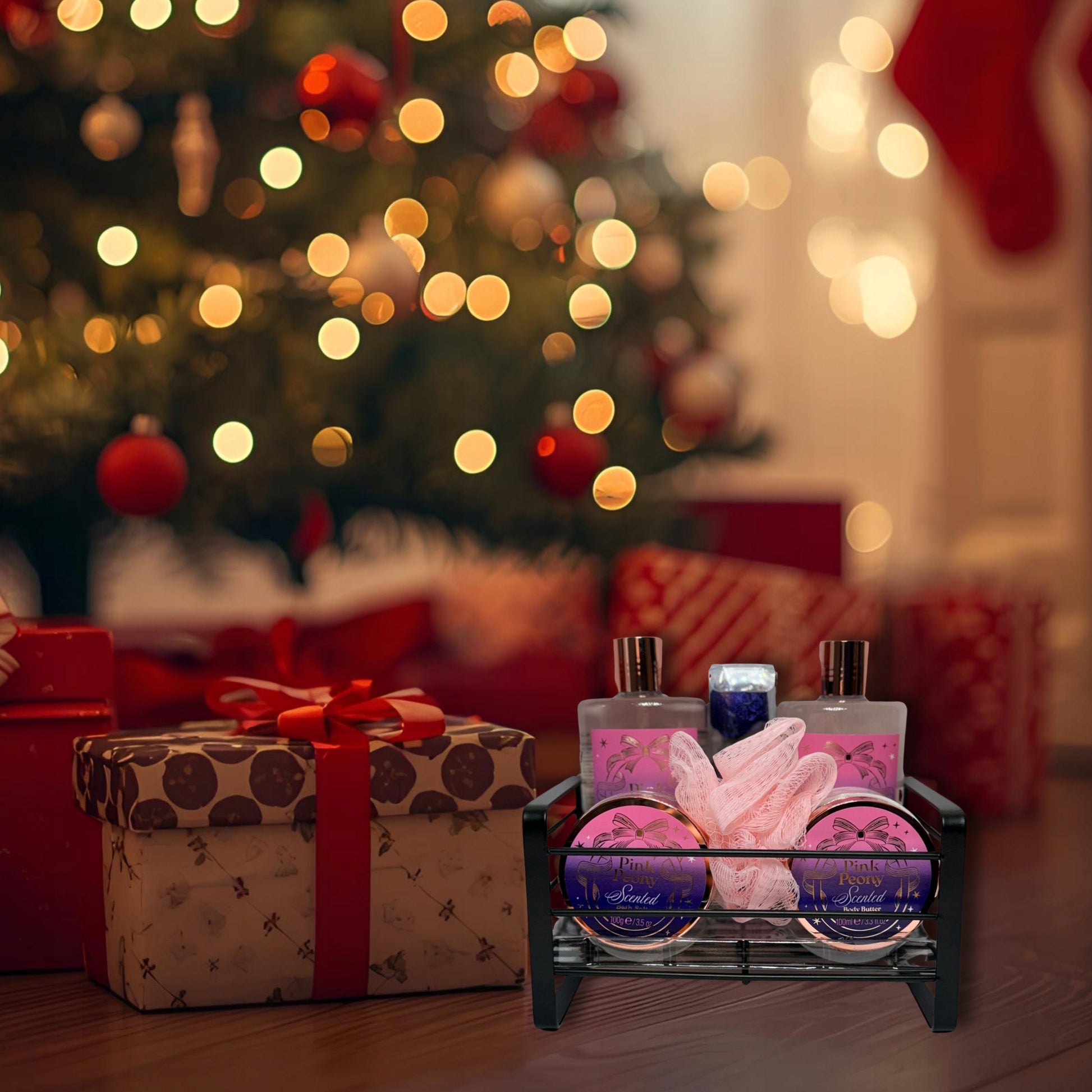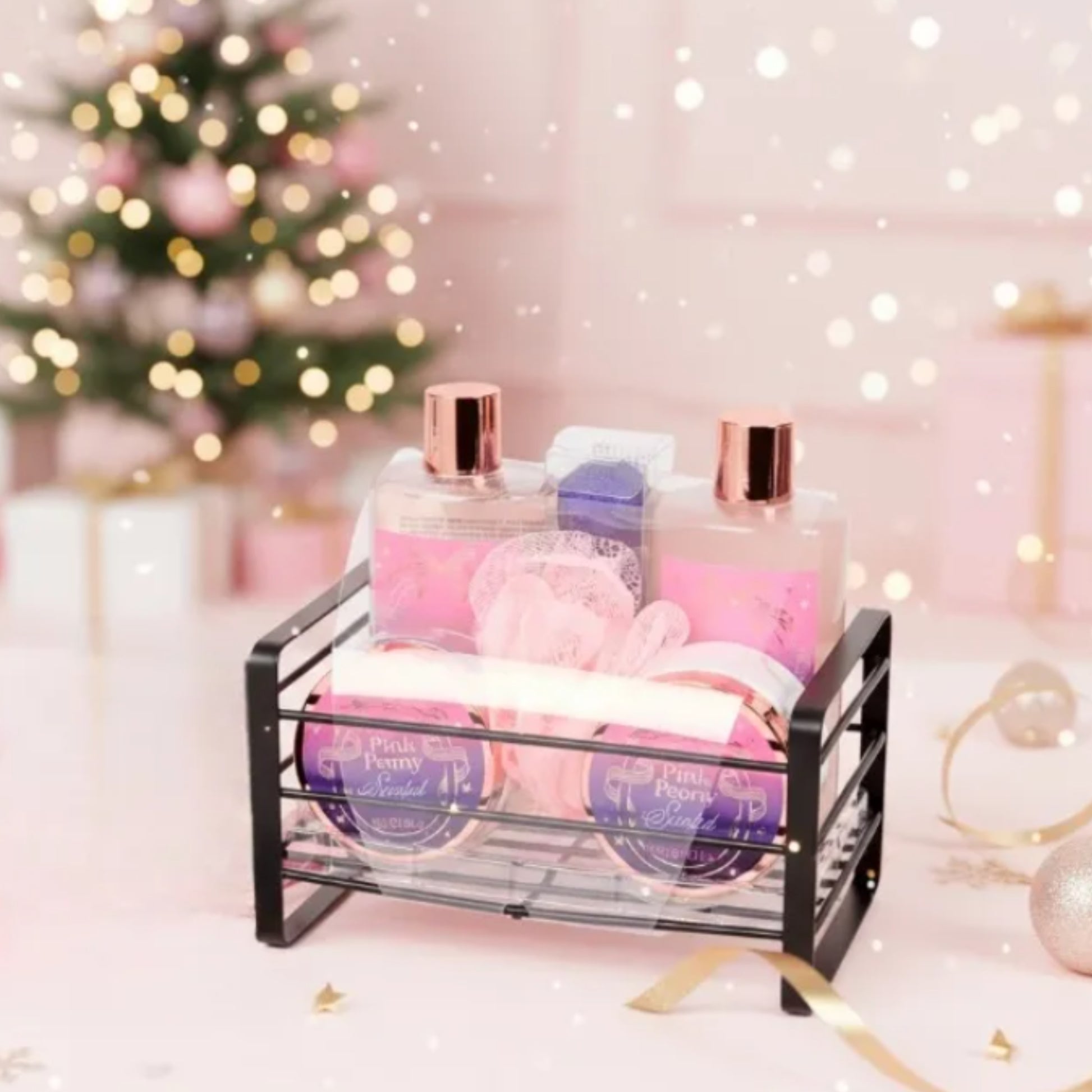 Kalėdinis SPA rinkinys jai – „Pink Peony“ grožio ir poilsio krepšelis