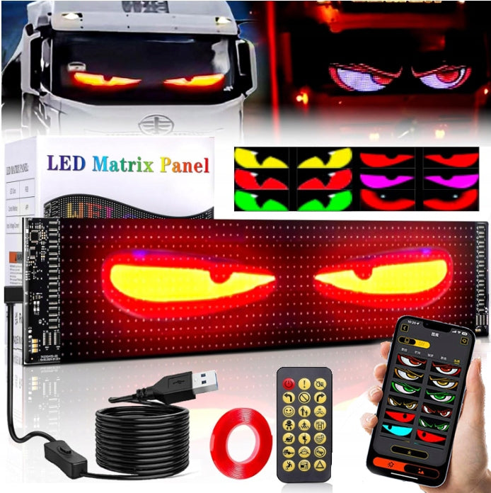 Lanksti LED juosta „Devil Eyes“ su programuojamu ekranu ir „Bluetooth“ valdymu sunkvežimiams