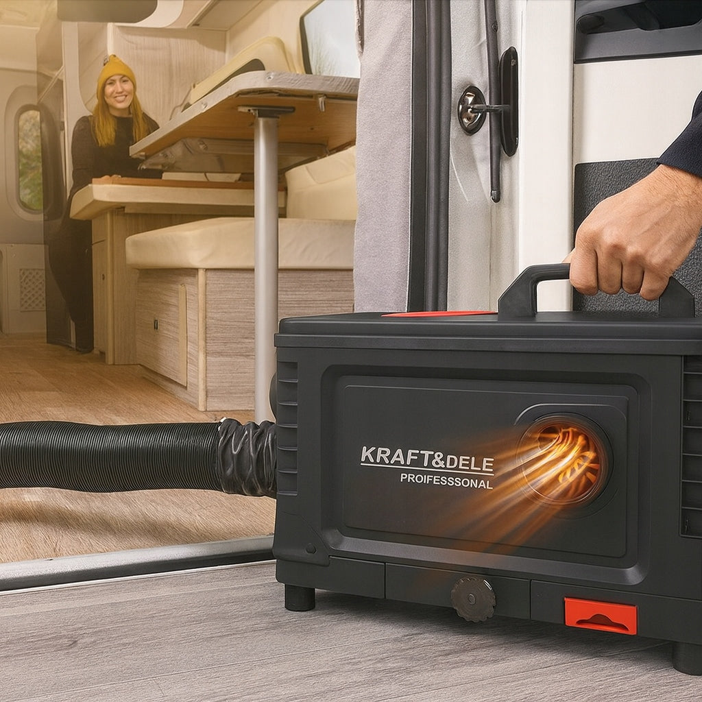 KRAFT&DELE KD11783 – tai mobilus, ekonomiškas ir itin efektyvus dyzelinis oro šildytuvas, skirtas greitam patalpų, transporto priemonių ar darbo vietų pašildymui. Įrenginys turi uždarą degimo kamerą, todėl nekelia degimo kvapo ir nedidina oro drėgmės lygio. Gali veikti nepriklausomai nuo variklio darbo.