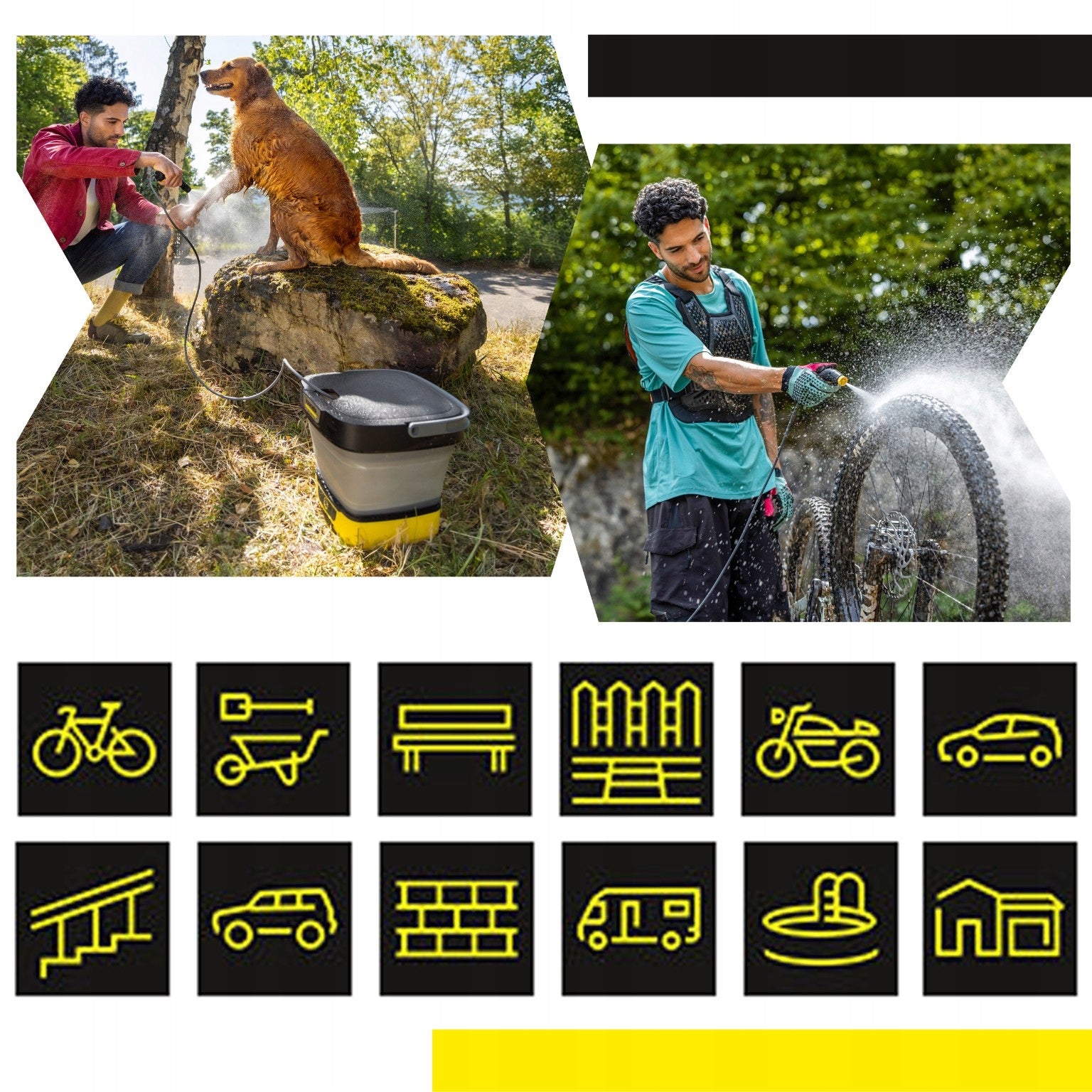 Karcher OC 3 Foldable – tai akumuliatorinis, nešiojamas plovimo įrenginys, skirtas naudoti bet kur, nepriklausomai nuo elektros ar vandens šaltinio. Kompaktiškas, lengvas ir patogus transportuoti, todėl puikiai tinka tiek kelionėms, tiek naudoti namuose ar sode.