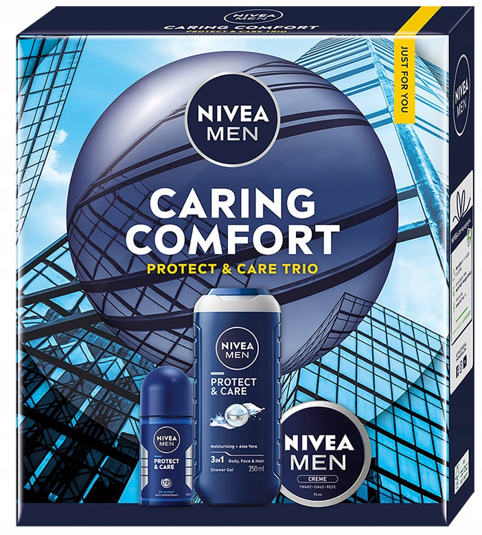 Nivea Men Caring Comfort – tai praktiškas ir kokybiškas kalėdinis rinkinys vyrams, sukurtas kasdienei odos, kūno ir plaukų priežiūrai. Rinkinio produktai drėkina, saugo odą ir suteikia ilgalaikį gaivos pojūtį, todėl tai puiki dovana bet kuriam vyrui.
