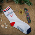 Stilinga dovaninė pakuotė su piratų tematikos dizainu.