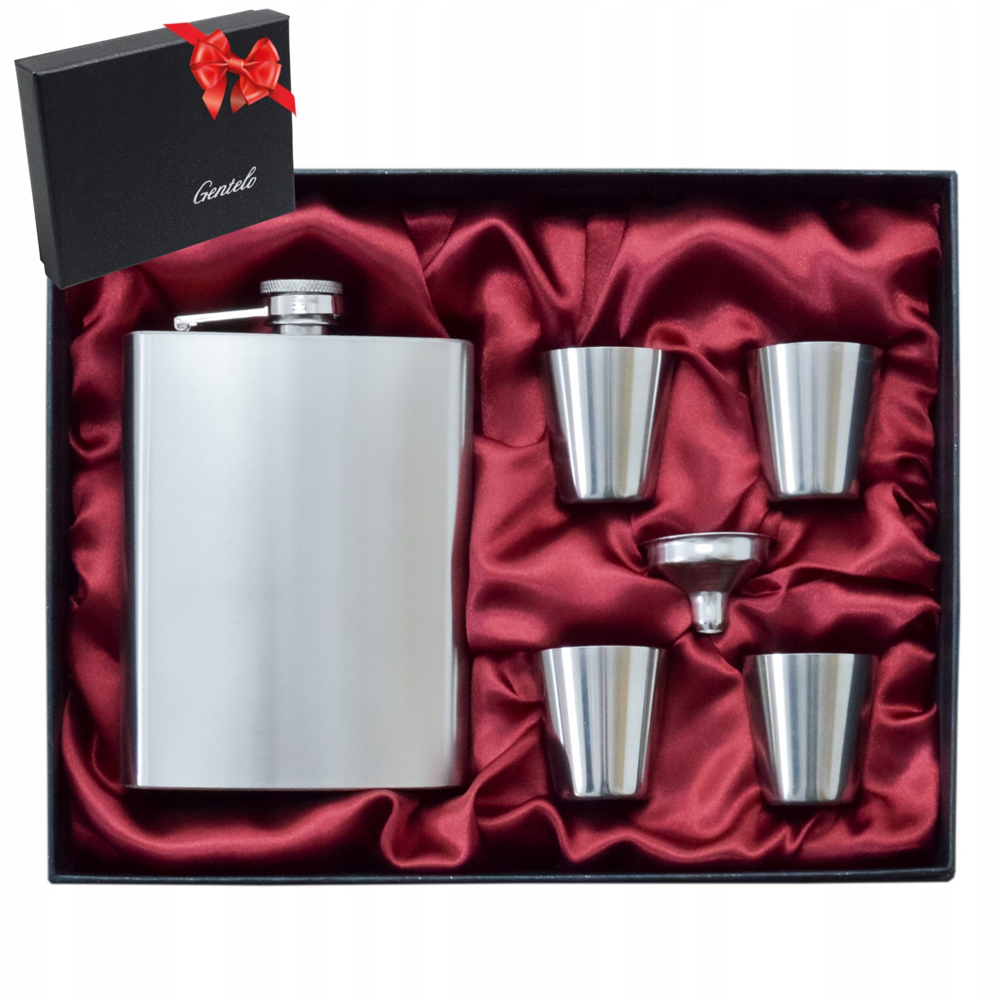Plieninis gėrimų rinkinys su taurelėmis – dovanų komplektas