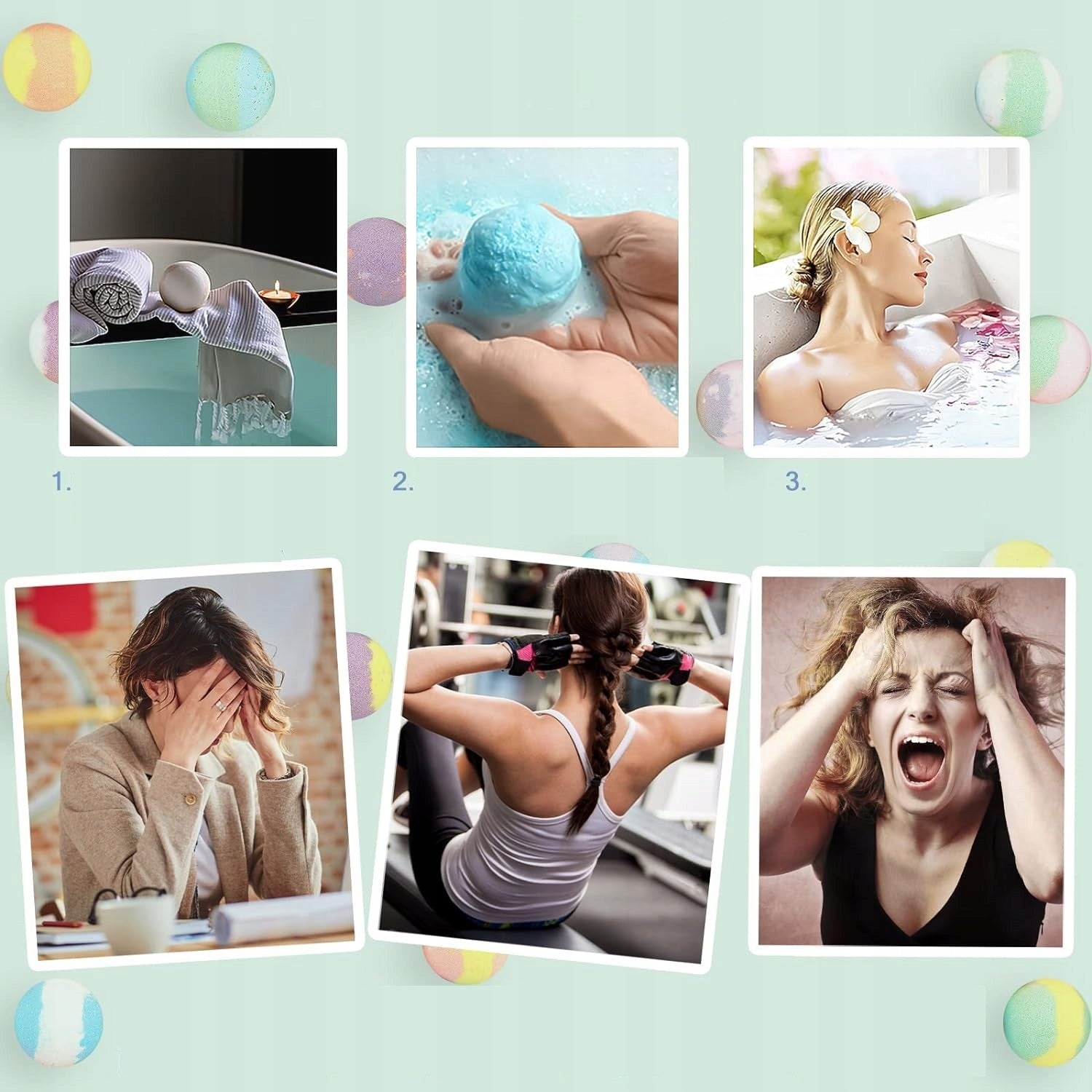 Įdėkite 1–2 bombų į šiltą vonią ir leiskite joms tirpti. Aromatai ir natūralūs aliejai sukurs jaukią SPA atmosferą, atpalaiduos kūną ir mintis bei paliks odą švelnią ir sudrėkintą.