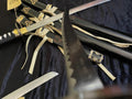 Originalus dovanų rinkinys – idealus pasirinkimas bet kokiai interjero dekoracijai ar ypatingoms progoms. Šis dekoratyvinis samurajų kardų rinkinys yra sukurtas remiantis istorinių modelių pavyzdžiais ir 100% rankų darbo naudojant aukščiausios kokybės medžiagas. Tai puikus pasirinkimas kaip dovaną vyrui, vyrui, tėčiui, seneliui, broliui, dėdei ar kolegai.