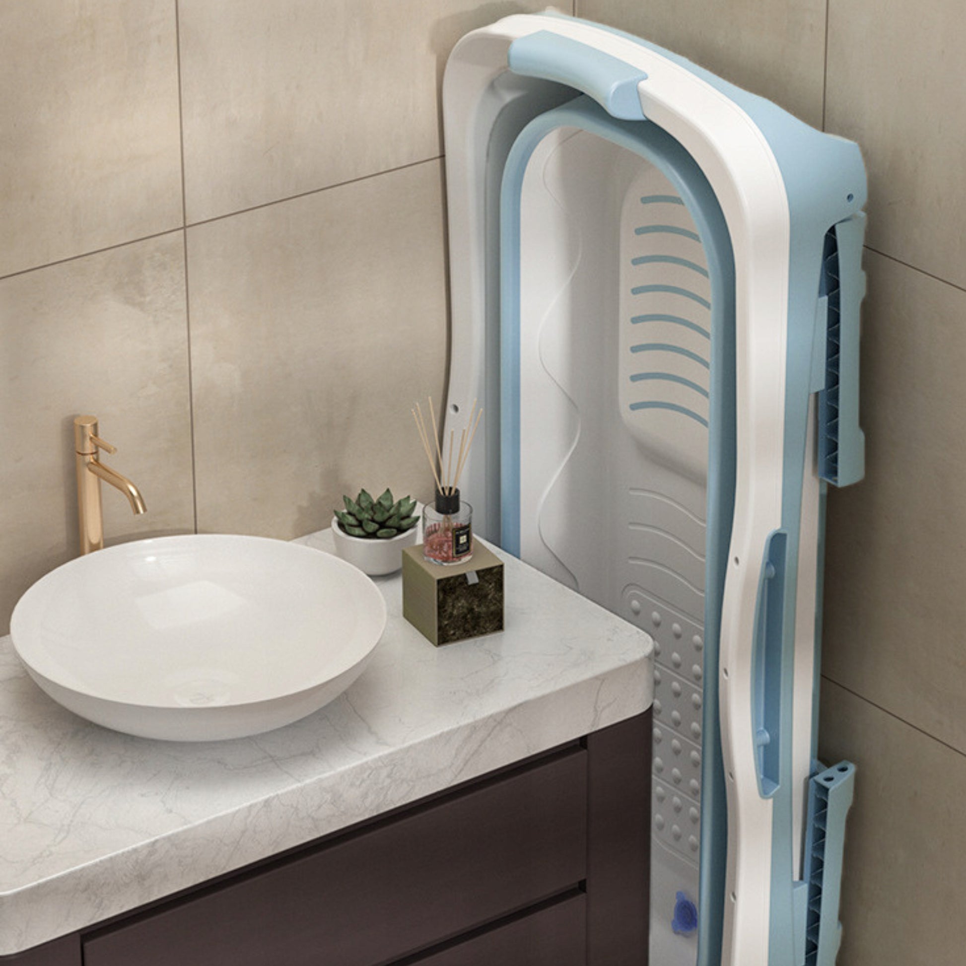 Sulankstoma nešiojama vonia su PVC dangčiu – tai praktiškas ir komfortiškas sprendimas kiekvienam, norinčiam pasimėgauti pilnaverte vonios patirtimi net mažoje erdvėje.