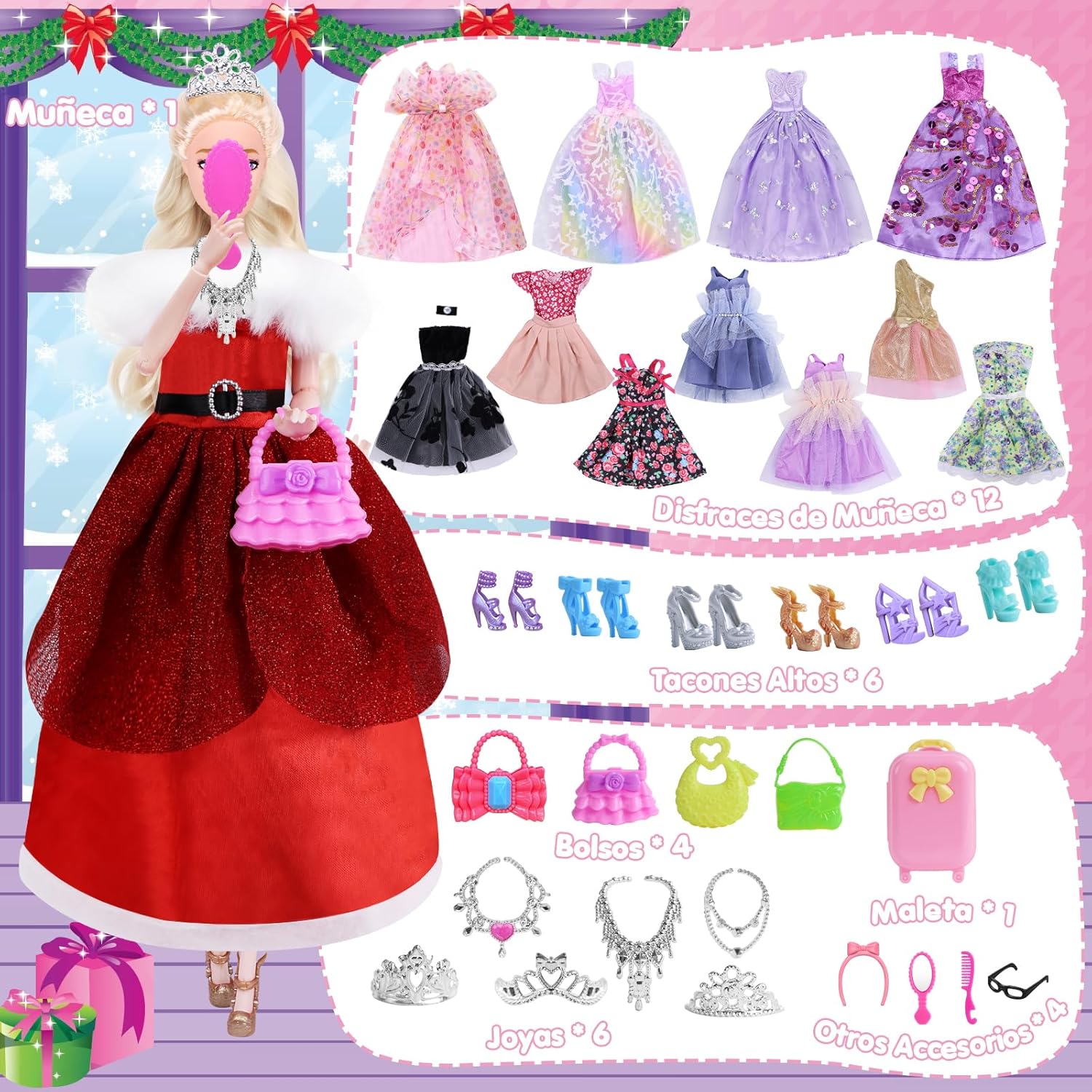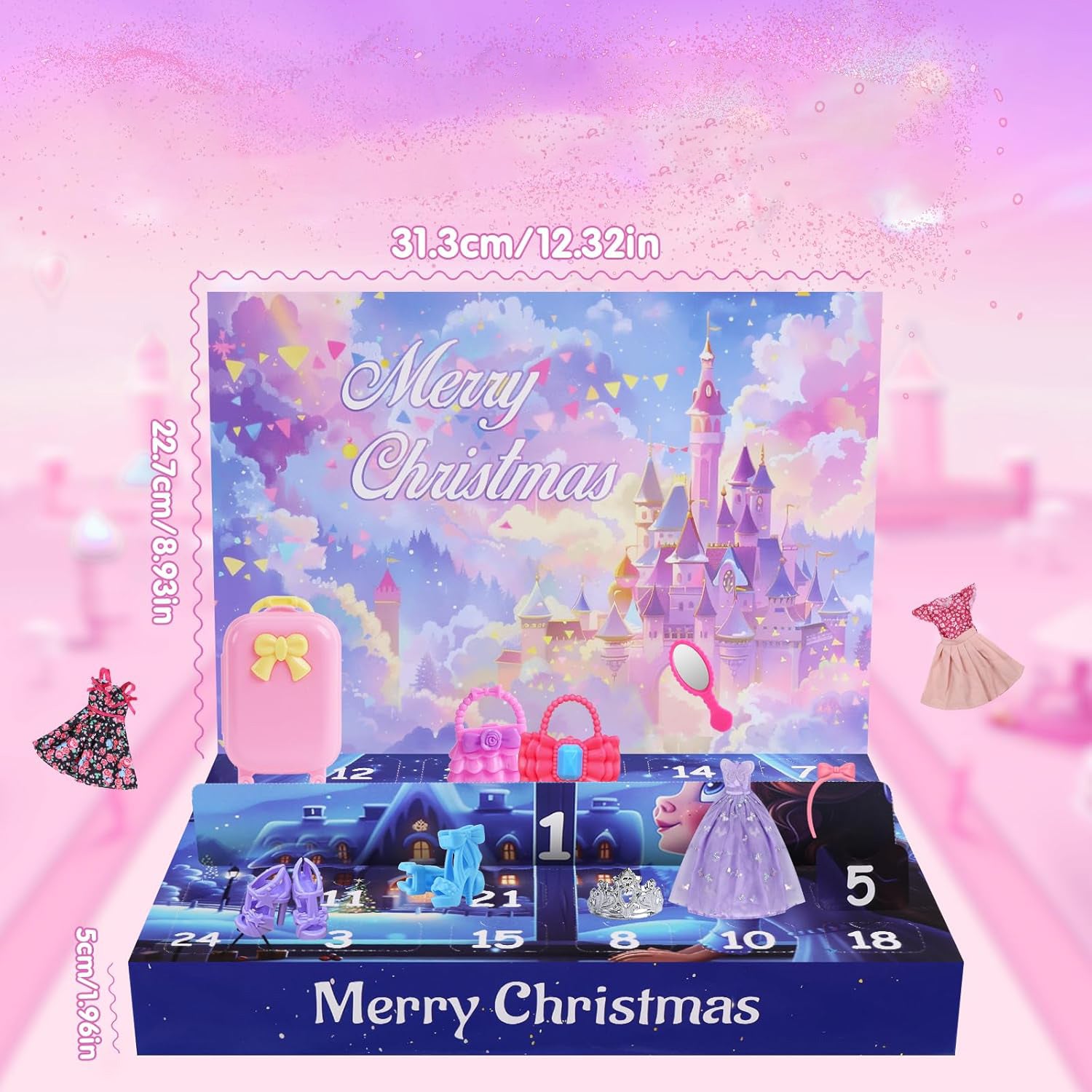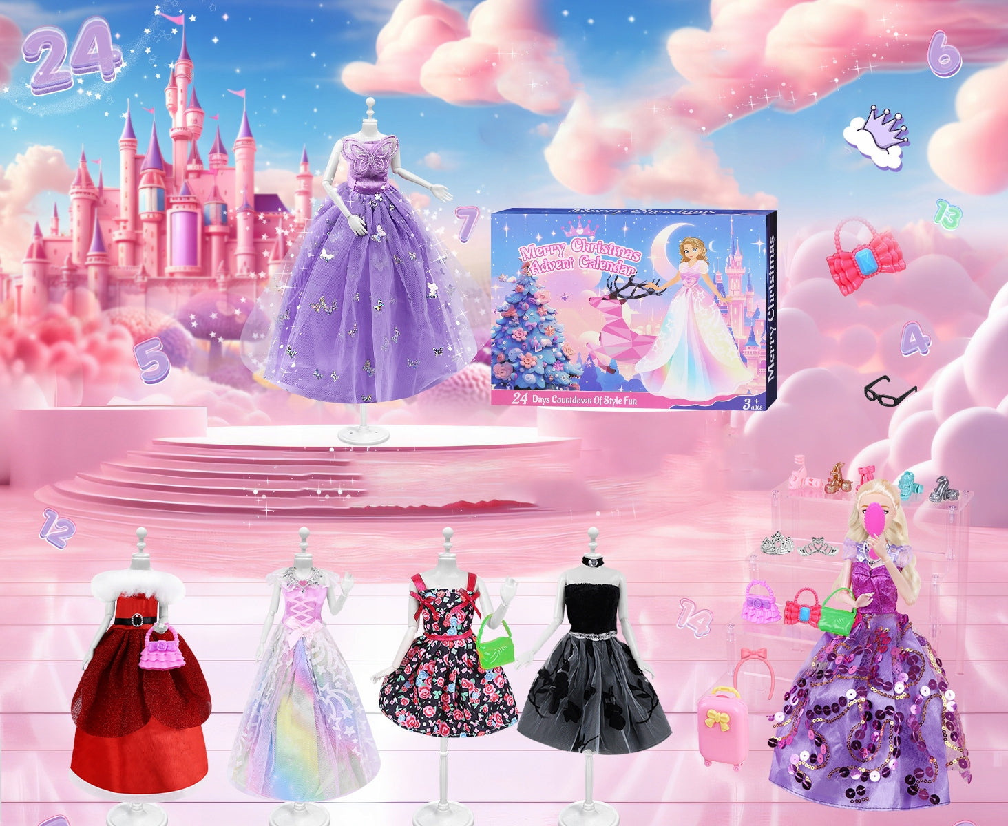 Vaikų advento kalendorius – lėlė su rūbais, batais ir aksesuarais (24 dalys)