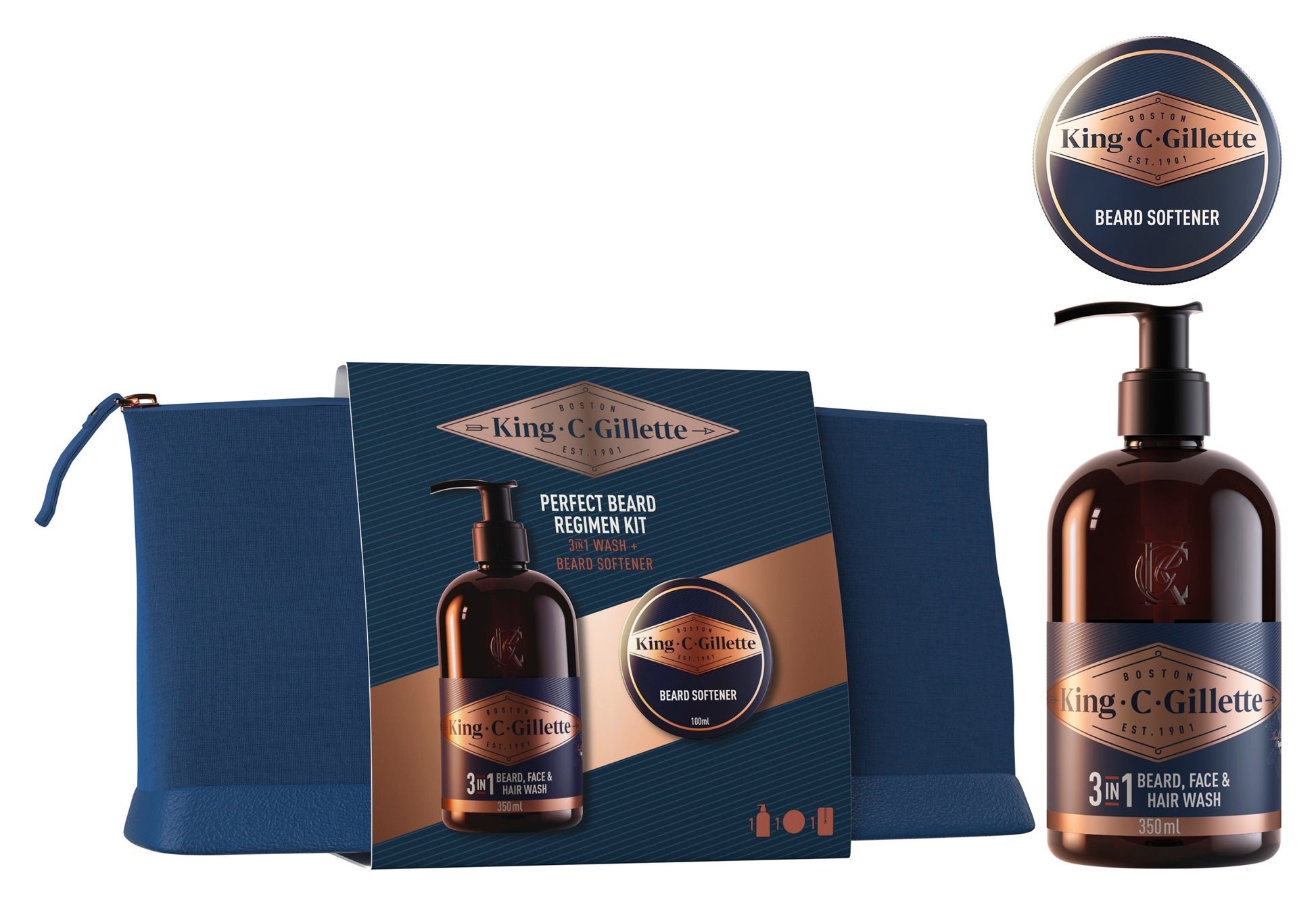 „King C. Gillette Perfect Beard Regimen Kit“ – tai universali barzdos priežiūros dovana vyrui, siekiančiam tvarkos, švaros ir profesionalaus įvaizdžio. Rinkinyje esantis 3in1 prausiklis (barzdai, veidui ir plaukams) bei barzdos minkštiklis veikia kaip tobula pora, užtikrinanti švarą, glotnumą ir malonų pojūtį kiekvieną dieną. Viskas supakuota į praktišką, stilingą kelioninį krepšį „King C. Gillette“.
