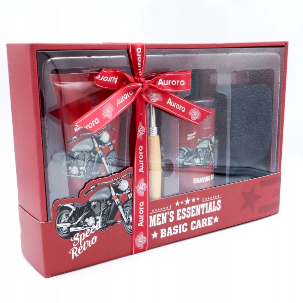 Vyrų skutimosi rinkinys AURORA Retro 4 dalių su rankšluosčiu – dovanų rinkinys
